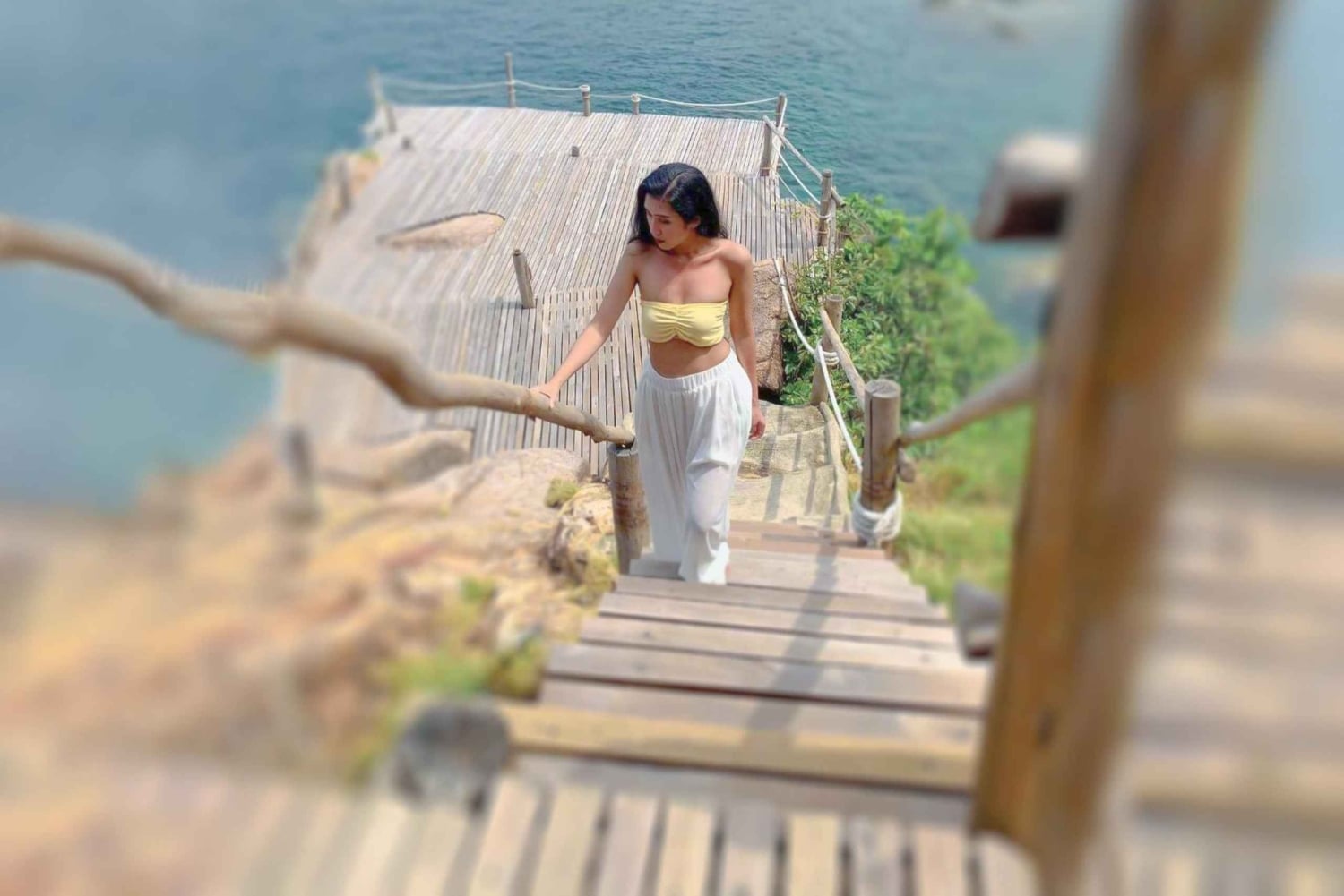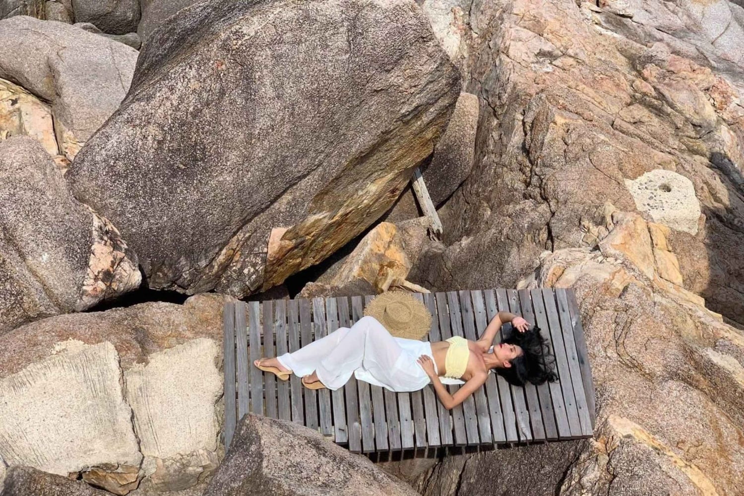 وجهة نظر جون-سوان أو سون سوان فيو بوينت ابدأ رحلتك بمشاهدة منظر خلاب! تنزّه في ممر قصير للوصول إلى وجهة النظر المذهلة هذه، حيث ستستمتع بمشاهد بانورامية للمساحات الخضراء المورقة والمياه الصافية. إنها بقعة مثالية للصور لن تنساها أبداً. منتجع كوه تاو ريلاكس فريدوم بيتش خذ قسطاً من الراحة في هذه الجنة الشاطئية الهادئة. اغمس أصابع قدميك في الرمال البيضاء الناعمة، أو اسبح في المياه الفيروزية الهادئة، أو ببساطة استمتع بالأجواء الهادئة في هذه البقعة المريحة. بنغل موندانس ماجيك فيو اختبر سحر أماكن الإقامة الفريدة في كوه تاو في هذه المحطة ذات المناظر الخلابة. استمتع بإطلالات مذهلة على المحيط أثناء احتساء المشروبات المنعشة أو التقاط بعض اللقطات التي تستحق أن تُنشر على إنستغرام. لوف كوه تاو لا يقتصر هذا المقهى المريح على القهوة اللذيذة والوجبات الخفيفة اللذيذة فحسب، بل إنه أيضاً وجهة نظر رائعة! استمتع بالمناظر الخلابة للجزيرة بينما تستمتع بتناول وجبة سريعة لإعادة شحن طاقتك. خليج تانوتي جوهرة خفية لعشاق الشاطئ! يُعدّ خليج تانوتي مكاناً مثالياً للغطس أو السباحة أو مجرد الاسترخاء بجانب الماء. جماله الطبيعي وأجواؤه الهادئة تجعله مكاناً لا بد من زيارته. أعالي القمر بقعة هادئة للاستمتاع بالطبيعة والمناظر الخلابة! يُعد هاي ذا مون مكاناً مثالياً لمشاهدة غروب الشمس والاسترخاء مع الأصدقاء والتقاط الصور. مكان رائع للشعور بالقرب من جمال كوه تاو. ساي نوان ساي نوان هو شاطئ هادئ وجميل محاط بالطبيعة. وهو مثالي للسباحة أو الغطس أو مجرد الاسترخاء تحت ظلال أشجار النخيل. وبفضل مياهه الصافية وأجوائه الهادئة، فهو مكان رائع للهروب من الزحام. شاطئ أو لويك شاطئ آو لويك هو بقعة مذهلة برمالها الناعمة ومياهها الصافية. إنه مكان رائع للسباحة والغطس والاستمتاع بالحياة البحرية الملونة. تحيط به التلال وأشجار النخيل، وهو مكان هادئ للاسترخاء والاستمتاع بجمال كوه تاو.Includes