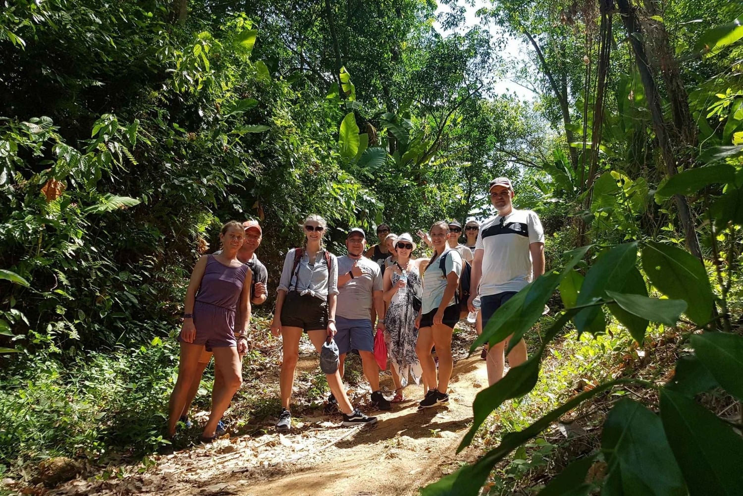 ابدأ مغامرتك 10:30 صباحاً - بعد أن يتم اصطحابك من مكان إقامتك، ستبدأ رحلتك. ستلتقي بمرشدك في نقطة الالتقاء. ستحصل على بعض المعلومات والمقدمات عن رحلتك ثم ستتحدى نفسك في نزهة على الأقدام في الغابة. أثناء التنزه، ستستمتع بالمشي لمسافات طويلة خارج المسار المألوف وستتعرف على بعض النباتات والأشجار المحلية التي ستكتشفها على طول الطريق. أثناء استمتاعك بمشاهدة المناظر الطبيعية من حولك كن على دراية ببعض القرود والحيوانات الأخرى التي تقترب منك. الراحة والانتعاش: بعد الانتهاء من التنزه في الغابة، ستتوقف لأخذ استراحة قصيرة لالتقاط أنفاسك. استمتع بالمناظر الخلابة لجزيرة فوكيت أثناء تناول بعض جوز الهند الطازج والفواكه والحلويات التايلاندية المحلية. تل بوذا الكبير: ثم ستستقل حافلة مكوكية تصعد إلى أعلى التل. على الرغم من أن تمثال بوذا الكبير مغلق وفقاً لأوامر من الحكومة، إلا أنه لا تزال لديك الفرصة لمشاهدة التمثال من الخلف. تمثال بوذا الكبير هو أكبر تمثال في الجنوب بطول 45 متراً وعرض 25.45 متراً. هنا، يمكنك التقاط الصور والاستمتاع بالمناظر الخلابة لجزيرة بوكيت. تجارب المعبد بعد ذلك، ستتوجه إلى وات لوانغ فو سوبها (المعروف أيضاً باسم معبد سي سوبهارام)، حيث يمكنك الانغماس في أجواء المعبد الهادئة. هذه فرصة رائعة للتبرع من خلال تقديم السلع والأشياء الضرورية (مثل أدوات الزينة والشموع والبخور وغيرها من الأشياء المفيدة للرهبان). ستشارك بعد ذلك في الترانيم وتتلقى البركة من الراهب. وبينما يشاركك مرشدك معلومات عن تاريخ المعبد وأهميته، ستتعرف على العلاقة العميقة بين الشعب التايلاندي ودينه. بعد ذلك توجه إلى وات تشالونج (معبد تشالونج أو معبد تشاي تهارام) أكبر معبد وأكثر المعابد احتراماً وأكثرها زيارة في فوكيت. بُني المعبد في بداية القرن التاسع عشر ويُعرف بأنه المكان الذي يمكنك أن ترى فيه شظية من عظام بوذا وتقدّم الاحترام لها. سيطلعك دليلك على قصة وتاريخ هذا المعبد. الغداء بعد يوم مليء بالاستكشافات الثقافية والطبيعية، سنأخذك إلى مطعم 'من المزرعة إلى المائدة'، حيث ستستمتع بوجبة غداء تايلاندية أصيلة. يتم إعداد الوجبة بمكونات عضوية طازجة طازجة مزروعة من حولك، كما ستستمتع أيضاً بالعصائر المصنوعة من منتجات محلية. ملاحظة هامة: نظراً للوائح الحكومية، لا يمكننا دخول منطقة بوذا الكبير. ومع ذلك، لا يزال بإمكانك الاستمتاع بالمناظر الخلابة والتقاط صور لبوذا الكبير من الخلف.Includes