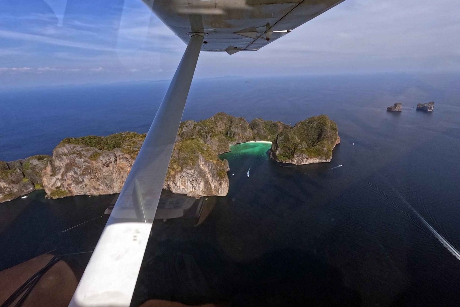 Experience the pure exhilaration of flying freely in the open sky on a lightweight aircraft above the mesmerizing landscapes. Capture stunning photos of the turquoise waters of the Andaman Sea.