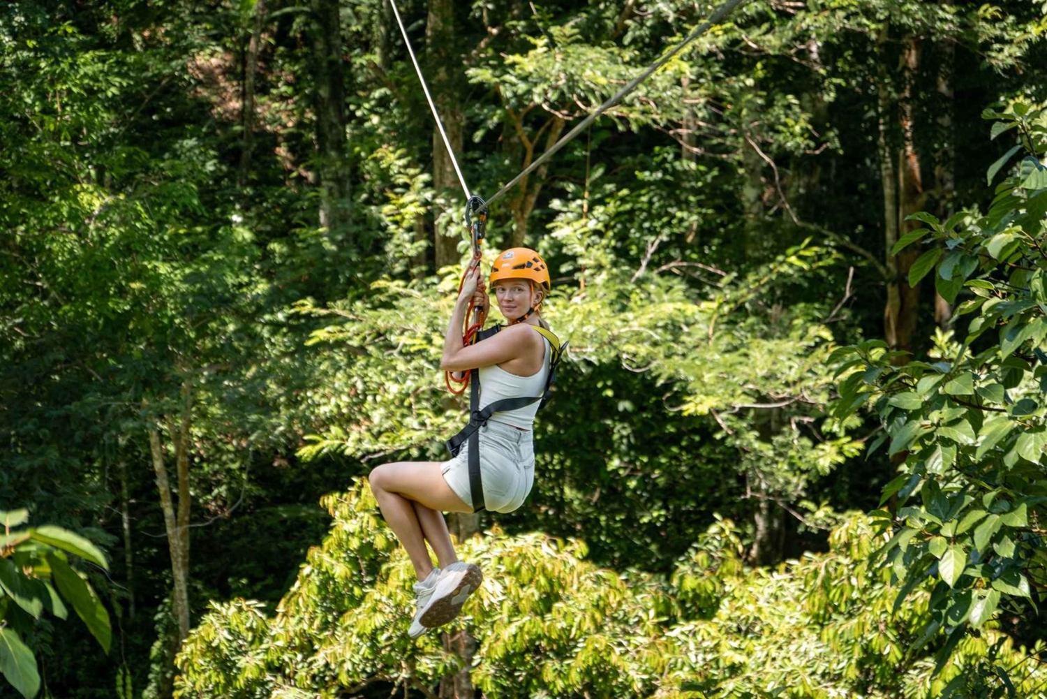 Svæv gennem luften på et zipline-eventyr i Patong Beach. Nyd den betagende udsigt over det turkisblå vand og det pulserende bybillede, mens du glider gennem luften i spændende hastigheder. Eravan Patong Seaview Zipline ligger midt i Patong Beachs frodige grønne områder og tilbyder et spændende eventyr, der kombinerer en betagende udsigt med en adrenalinpumpende oplevelse. Vores zipline er strategisk placeret i gåafstand fra de største hoteller i Patong, hvilket gør den let tilgængelig for turister, der ønsker en uforglemmelig oplevelse. Mens du svæver gennem luften, kan du nyde synet af det fantastiske panorama over Patong Beach. Fra det turkisblå vand til det pulserende bybillede er udsigten ganske enkelt fascinerende. Oplev spændingen ved at svæve gennem luften i en forrygende fart med vinden i håret og den betagende udsigt over Patong Beach. Vores topmoderne udstyr og erfarne instruktører sørger for din sikkerhed og komfort under hele eventyret. Vi overholder de højeste internationale standarder for at give en spændende, men sikker oplevelse.Includes