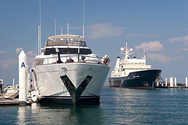 • Eine tief liegende, leistungsstarke Tankstelle • Elektrische Stromversorgung (Einphasig 16A, 32A, 63A, Dreiphasig 63A, 125A, 200A) • Wasserzähler für alle Liegeplätze • Bootsrampe mit Starteinrichtungen für alle trailerbaren Boote (Okt. 2008) • Slipanlage (Ende 2009) • Extra breite Ponton-Gehwege (4,6 m), Liegeplatzgrößen und Hafeneinfahrt (50 m) • Pontonzugang und Transport mit Golfbuggys und Handwagen • Trockenlager • Bequeme Autoparkplätze