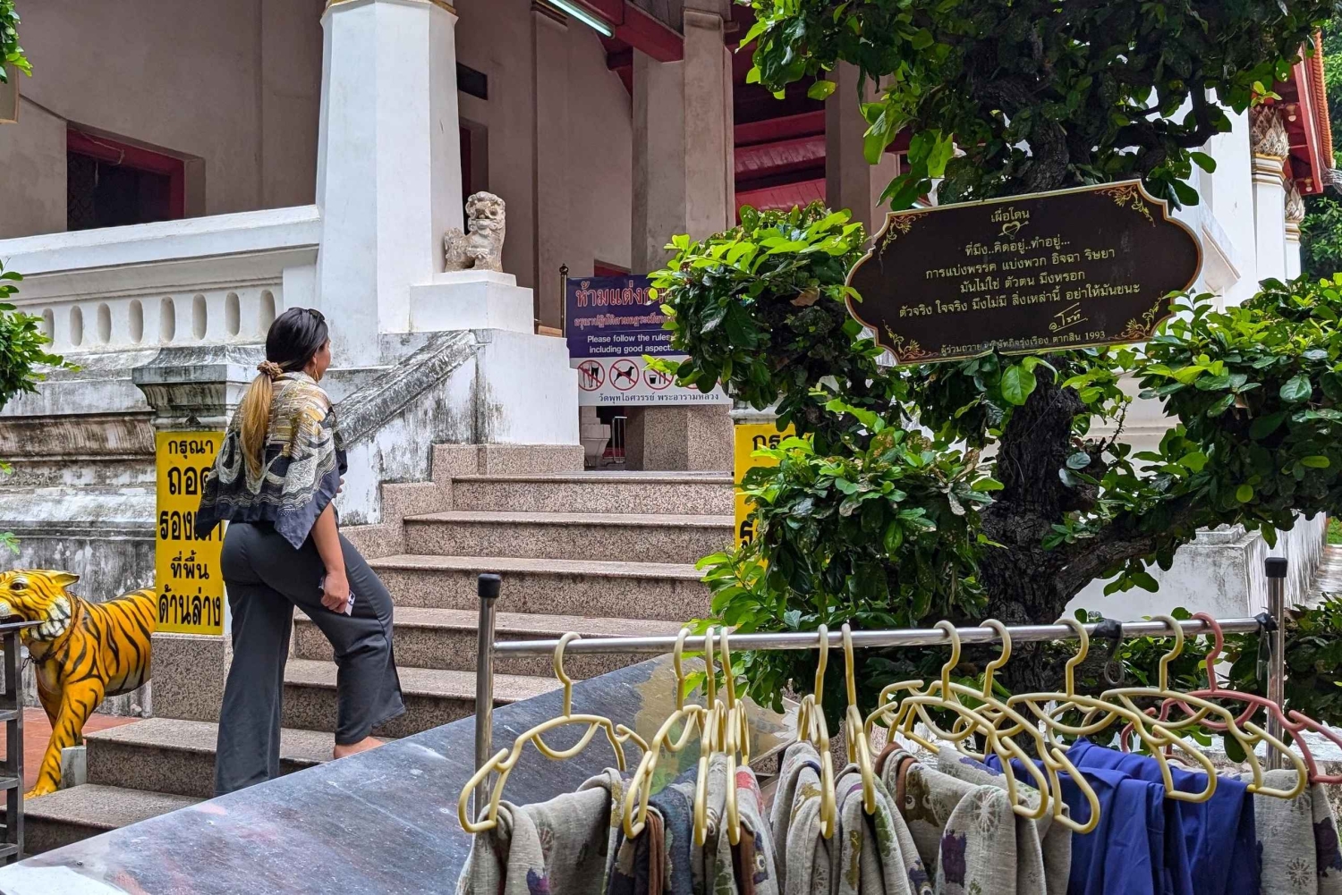 - Die private Longtail Tour in Ayutthaya dauert maximal 4 Stunden. Wenn du vielleicht schneller mit den Tempelbesuchen fertig bist als sonst, kann die Tour auch etwas früher enden. Auf dieser Tour gibt es keinen Tourguide, denn der Taxifahrer bringt dich nur zu den Orten der Tour. Der einheimische thailändische Bootskapitän und der Autofahrer sprechen nur sehr einfaches Englisch, gerade genug, um sich über die Tour zu verständigen. Wenn bei den Tempelbesuchen um Spenden gebeten wird, ist das nicht verpflichtend, aber natürlich erlaubt, wenn du willst. Die Eintrittsgelder hingegen sind obligatorisch und müssen in bar bezahlt werden. Regen ist in Thailand unberechenbar und kann jederzeit auftreten. Die Tour wird bei Regen fortgesetzt, wenn die Bedingungen sicher sind, und es wird keine Rückerstattung gewährt. Wenn die Bedingungen unsicher sind, wird die Tour abgesagt und du kannst sie verschieben oder bekommst den vollen Preis zurück. Achte darauf, dass du für die Besichtigung der Tempel angemessen gekleidet bist. Das heißt, keine nackten Schultern, keine nackten Knie.