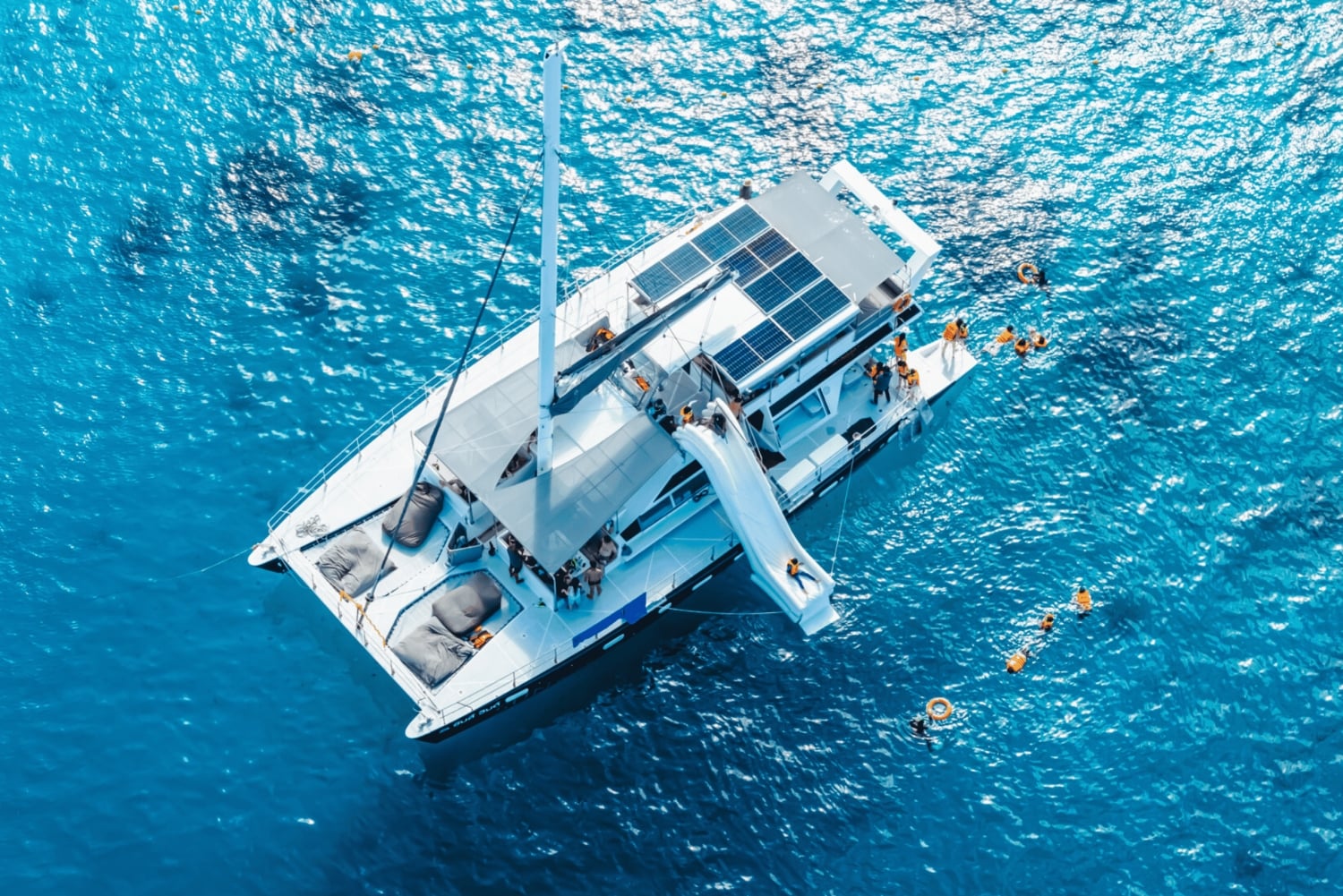 Katamaranfahrt Hotel Transfers Safety first company Reiseversicherung Nationalpark-Gebühren Leckeres Mittagsbuffet Wasser in Flaschen, Softdrinks, Kaffee, Tee, Snacks, Obst Schwimmweste, Maske und Schnorchelausrüstung Professioneller GuideEasy cancellation