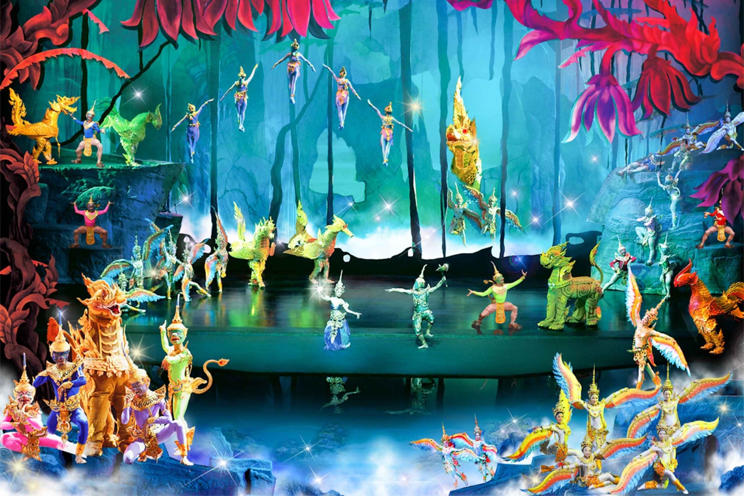 El espectáculo Siam Niramit Phuket es una gran introducción a la cultura de Tailandia a través de su historia, religión y festivales. El espectáculo incluye música, rutinas de baile y artes marciales tradicionales. Los 3 actos principales comprenden un viaje a través de la historia de Tailandia, hacia los 3 reinos centrales de las creencias tradicionales tailandesas. Selecciona la opción de bufé para disfrutar de una comida de platos tailandeses e internacionales. El restaurante abre de 17:30 a 20:00. Además, merece la pena llegar pronto al espectáculo previo para ver varios tesoros culturales tailandeses, como un mercado flotante, un espectáculo de fuentes y luces, asombrosos espectáculos de danza, boxeo tailandés e incluso la alimentación de elefantes.Includes