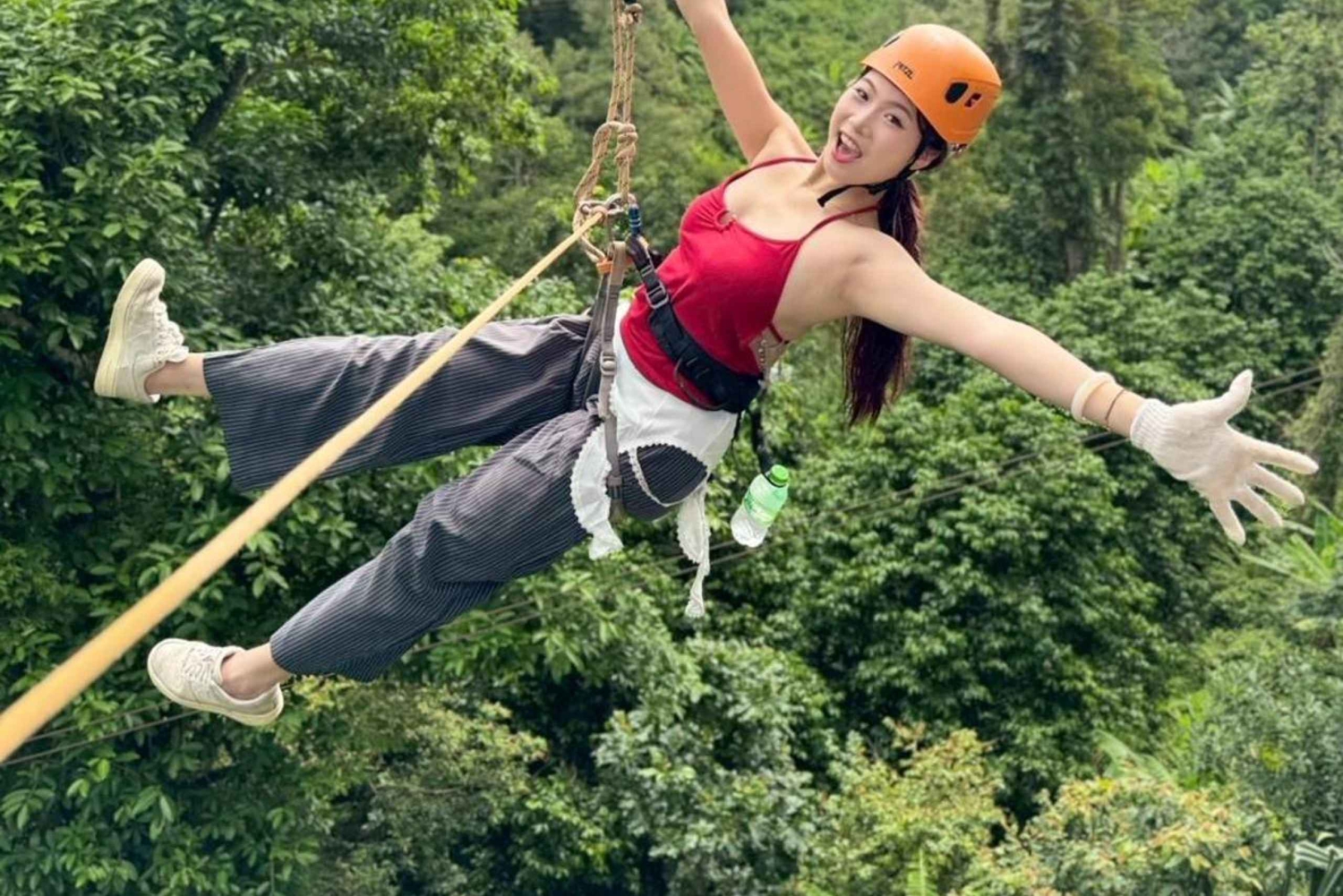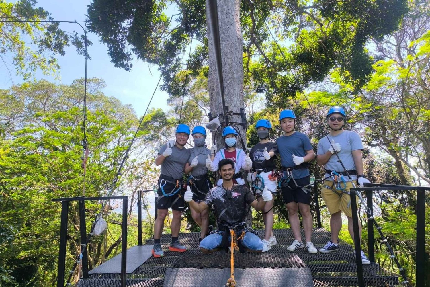 Vuela por la selva en una aventura en tirolina cerca del templo del Gran Buda de Phuket. Disfruta de vistas panorámicas del mar, paisajes exuberantes y una experiencia emocionante para todos los niveles.