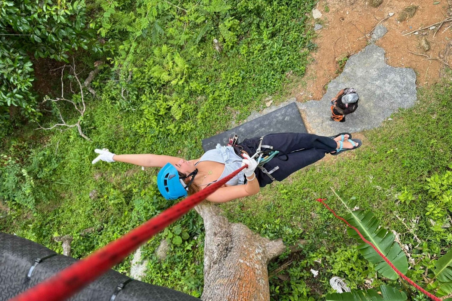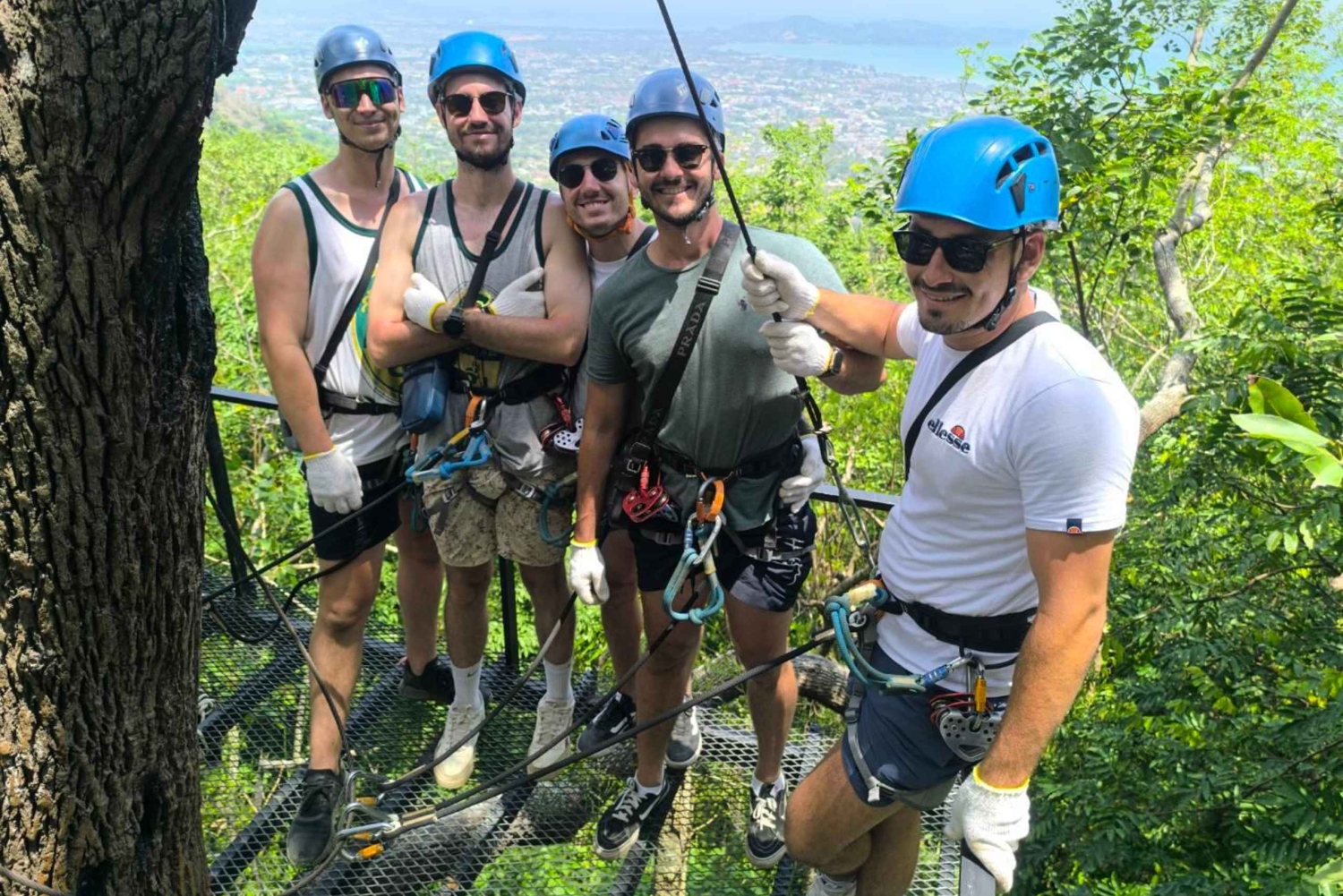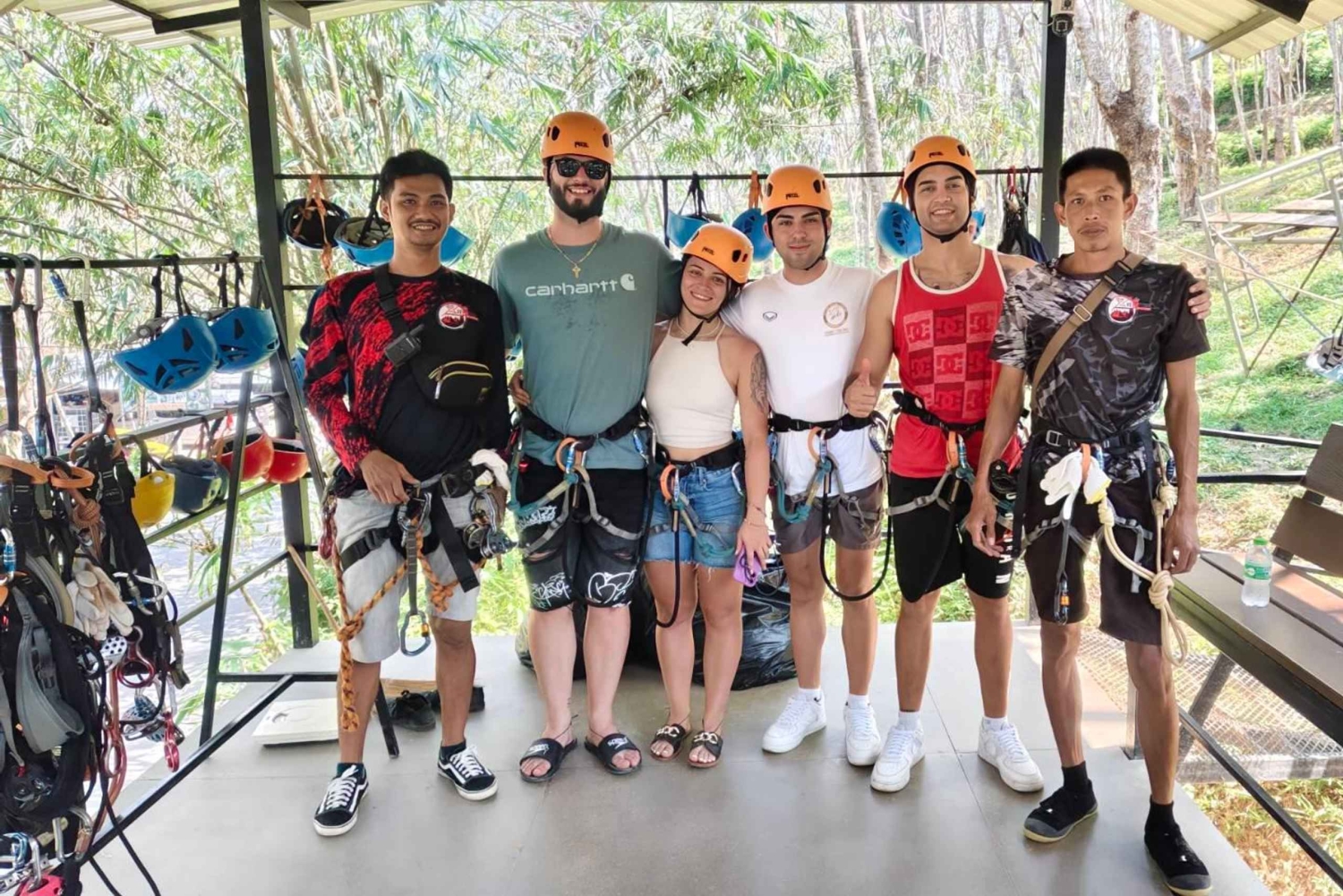 Vive la aventura de tirolina definitiva en Phuket en el icónico templo del Gran Buda, donde el impresionante paisaje panorámico se combina con las emocionantes aventuras de la selva. Prepárate para volar por las copas de los árboles de la selva y disfruta de las vistas panorámicas más espectaculares del mar que ofrece Phuket. Este emocionante tour en tirolina te lleva por encima del suelo del bosque, donde te deslizarás entre plataformas mientras te rodean impresionantes vistas de la selva y panoramas del océano que se extienden hasta donde alcanza la vista. La ubicación única en el templo del Gran Buda añade una dimensión espiritual y cultural a tu aventura, convirtiéndola en algo más que una típica experiencia de tirolina. Tanto si es tu primera aventura como si ya tienes experiencia, los guías profesionales se aseguran de que tengas una experiencia divertida, segura e inolvidable, adaptada a tu nivel de comodidad. La experiencia está diseñada para participantes de todos los niveles, con charlas de seguridad completas y equipo de primera calidad que permite a todos disfrutar de la emoción de volar por las copas de los árboles con total confianza. El equipo de expertos se dedica a crear recuerdos que durarán toda la vida, manteniendo los más altos estándares de seguridad en toda tu aventura en la jungla.Includes