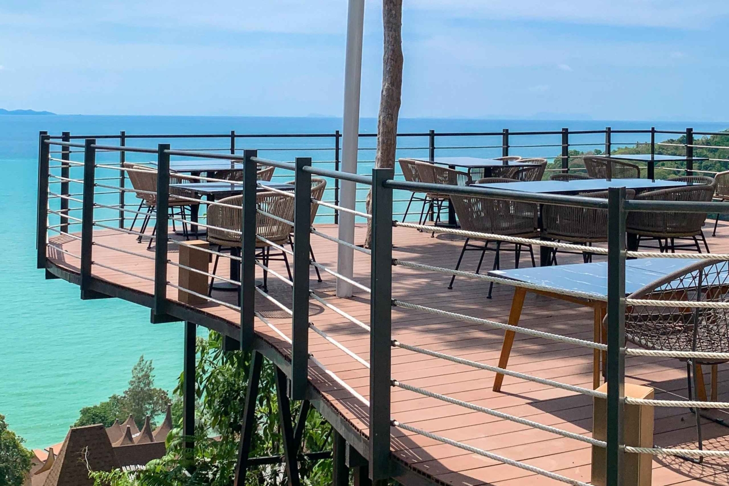Empieza el día con una cómoda recogida en tu hotel de Phuket. Dirígete a tu primera parada, el Hilltop Cafe en Sinae Phuket, situado en las tranquilas colinas de la isla de Siray. Disfruta del lujoso entorno y saca unas fotos impresionantes. Después, visita el Phuket Viewpoint Cafe, una cafetería rosa con vistas al mar. Aunque la comida cuesta un dineral, las vistas valen millones. Haz fotos del impresionante paisaje y disfruta de su ambiente único. Continúa hasta A Blanket & A Pillow, una cafetería junto al mar con vistas a la playa de Karon. Relájate con la brisa fresca bajo los árboles y disfruta de las impresionantes vistas de la costa. Luego, ve al NUA TONE CAFE, una cafetería en medio del bosque con vistas a una cascada. Tómate un café, contempla la cascada y disfruta de la sombra de las montañas de Bang Tao. Por el camino, visita una granja de miel y compra recuerdos de hierbas tailandesas. Antes de volver al hotel, podrás hacer más fotos en un mirador.Includes