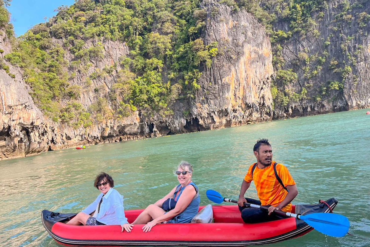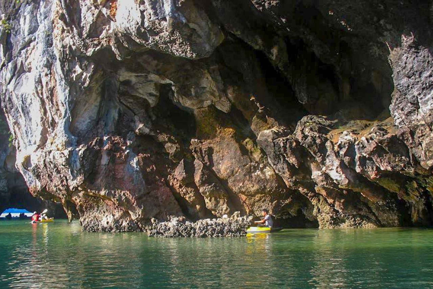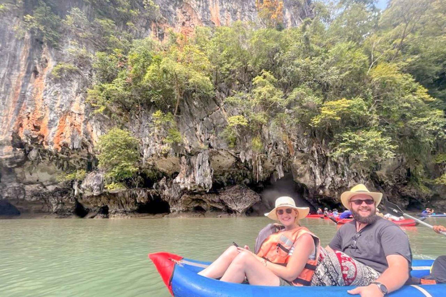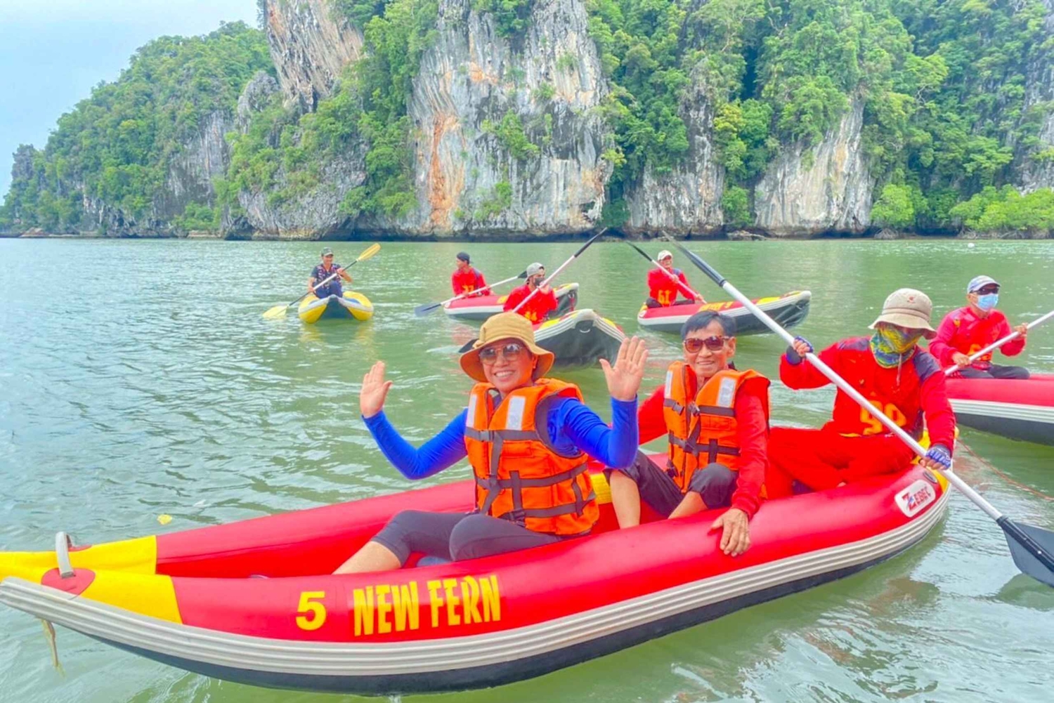 Embark on an exciting water-based expedition starting from Phuket, as you venture into the enchanting mangrove forest and try to spot local wildlife like fish and birds along the way. Hop aboard a traditional Thai longboat, where you'll be transported to the canoeing station. Get ready to immerse yourself in the serenity as you settle into your canoe, guided by an experienced paddler. Traverse the mesmerizing sea caves and capture memorable photos at the renowned Koh Ping Khan and Koh Tapu, famously known as James Bond Island. Indulge in a delectable local lunch upon arriving at the floating sea village, savoring the flavors of the region. Take your time to wander through the village, interacting with the friendly locals and gaining insights into their daily lives and routines. Venture deeper into the village to witness firsthand how the locals reside and engage in their everyday tasks. Conclude your remarkable journey with a visit to Wat Suwan Kuha, a remarkable cave temple. Marvel at the reclining Buddha within and witness the lively spectacle of hundreds of monkeys residing near the temple entrance, adding to the temple's allure. Finally, return to the starting point of the tour, cherishing the memories created throughout this extraordinary experience.Includes