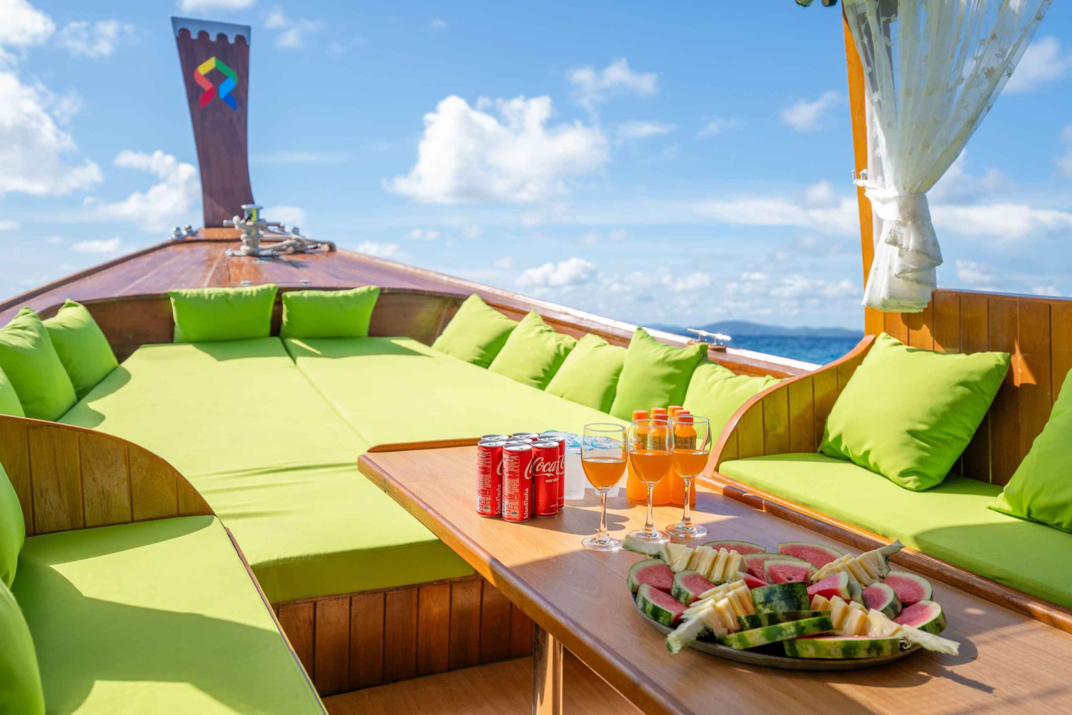 Cruise around the Andaman Sea on a private longtail boat. Choose from a variety of routes and explore the islands of the Andaman Sea. Snorkel in the clear waters and relax on the beach. Meet your boat assistant at the Visit Panwa Pier and board your luxury longtail boat. Choose from a variety of routes and explore the islands of the Andaman Sea. Snorkel in the clear waters and relax on the beach. Choose from a variety of routes: 1: Coral Island and Koh Lon Island (Morning) 2: Coral Island and Maithon Island (Morning or Afternoon) 3: Coral Island and Promthep Cape (Afternoon) Schdult Time: Morning 09:00-13:00 Afternoon 14:00-18:00 Enjoy a variety of snacks and drinks on board. Use the provided snorkeling equipment to explore the underwater world.Includes