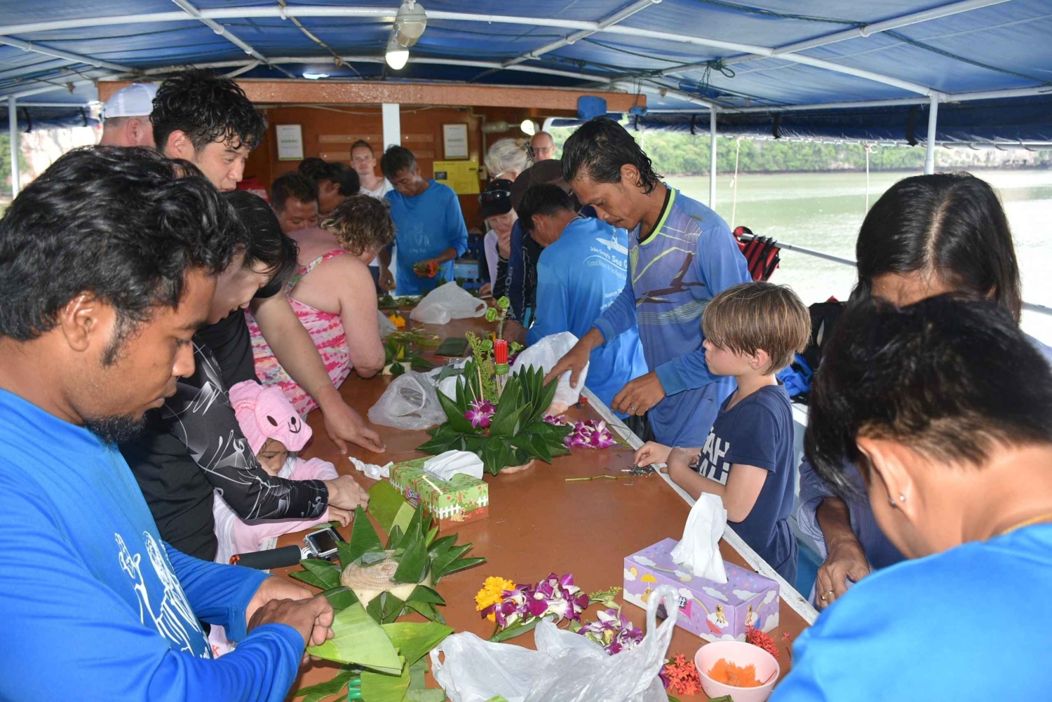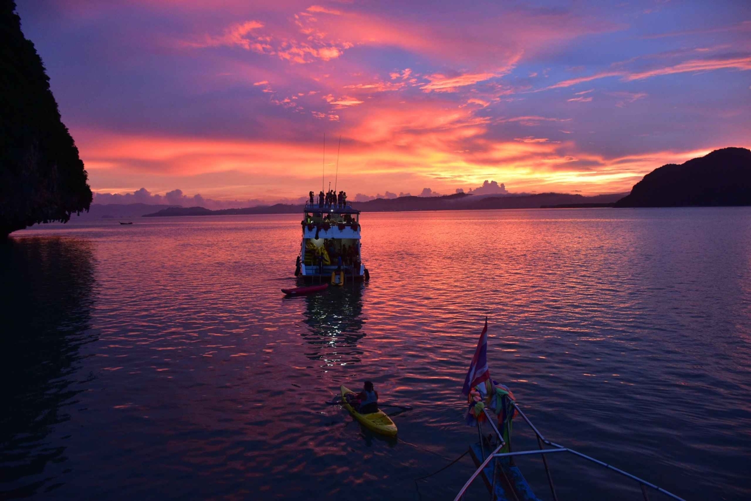 Get picked up from your Phuket hotel and board a comfortable minivan for a scenic journey to Ao Po Pier. After a warm welcome from the John Gray Sea Canoe crew, embark on a twin-engine escort boat and set sail for the breathtaking Phang Nga Bay. As you cruise through the emerald waters, enjoy a delicious, freshly prepared lunch served on board, fueling you for the adventure ahead. Marvel at the iconic James Bond Island, immortalized in the 1974 film 'The Man with the Golden Gun' and capture stunning photos of the famous rock pinnacle, Koh Tapu. Continue your journey to the enchanting Panak Island, where you'll paddle into one or two hidden caves with a local expert. Experience the tranquility of the serene lagoons and marvel at the intricate limestone formations. Next, head to the awe-inspiring Hong Island, where a majestic pinnacle pierces the sky. Kayak through the crystal-clear waters of the lagoon, surrounded by towering cliffs and lush greenery. As the day draws to a close, indulge in a healthy, freshly prepared dinner on the boat while watching the sun paint the sky with vibrant hues. Craft your own Krathong flower with the help of an expert guide and release it into the mystical cave of Phanak Island, making a wish upon the glowing plankton. After a magical evening, relax on the boat as you cruise back to Phuket, where you'll be returned to your hotel, filled with unforgettable memories of your Phang Nga Bay adventure.Includes