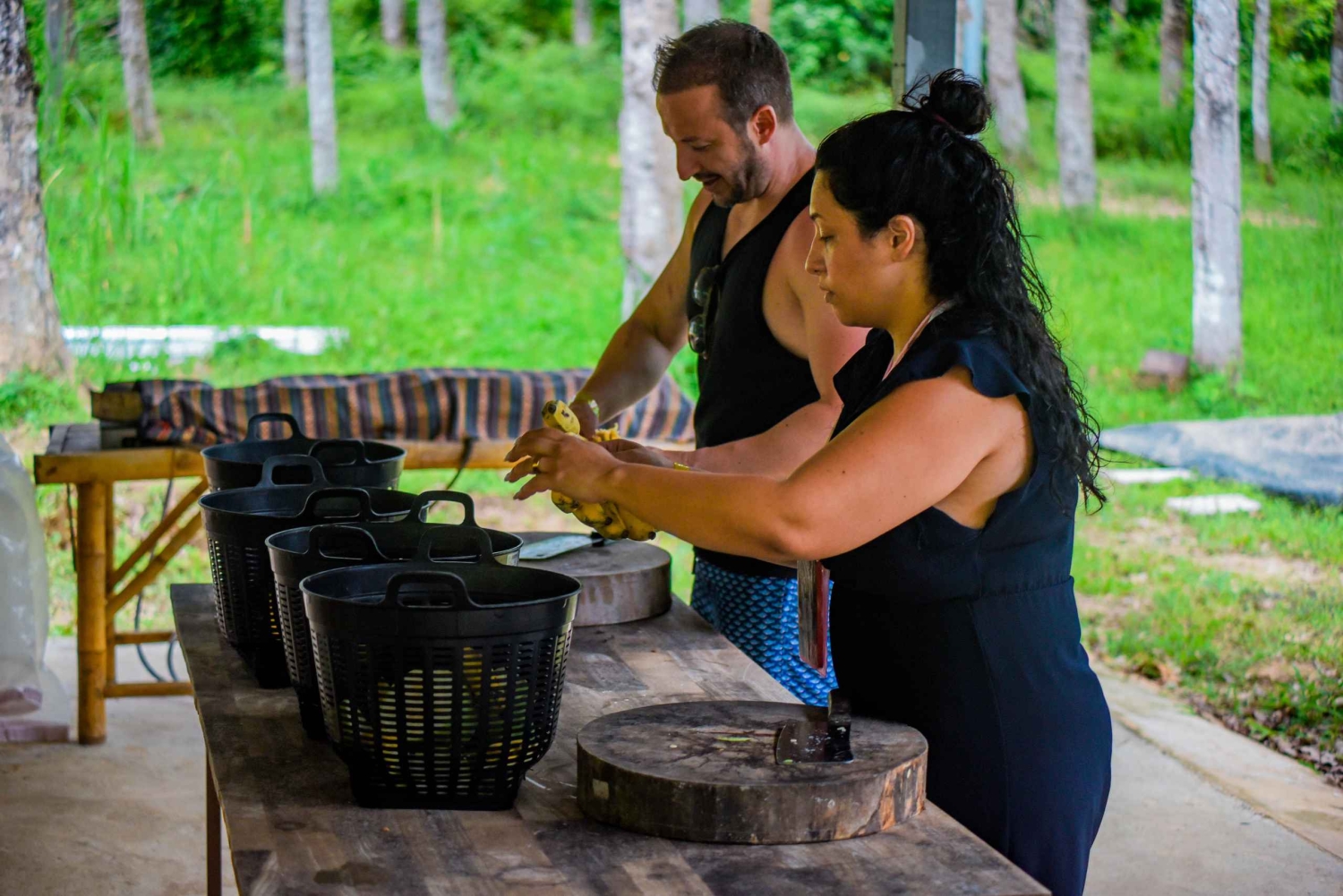 The Ultimate Half-Day Beachfront Elephant Experience in Phuket Embark on an unforgettable half-day journey to meet and interact with Asia's gentle giants on a beautiful Phuket beach. This unique experience is more than just a visit—it’s a chance to build a genuine connection, learn about the special bond between Thai people and elephants, and contribute to their well-being. Get Hands-On with Our Gentle Giants Upon arrival, you'll be greeted with a warm welcome and a brief introduction to our elephants. You'll learn about their history, their individual personalities, and the proper way to interact with them respectfully. Your hands-on activities include: Preparing Their Meal: You'll get to prepare and even plant food for the elephants, giving you a deeper understanding of their dietary needs and how we ensure they stay healthy. Feeding Time: Enjoy a rewarding experience by feeding the elephants their prepared meal. It's the best way to get to know them and earn their trust. Beach Walk: Join a friendly, relaxing walk with the elephants through our beautiful natural surroundings to a private beach. Sea Bath & Play: This is the highlight of your day! You'll get to bathe and play with the elephants in the sea. The saltwater helps them relax and naturally soothes their skin. Final Freshwater Rinse: After their fun in the ocean, we’ll bring them back for a final freshwater bath to ensure their skin stays clean and irritation-free. Basic Health Check: Learn to perform a basic health check, observing their behavior and vital signs to ensure they are happy and healthy. Making Vitamin Balls: Conclude your time with a fun activity: helping us make 'vitamin balls,' a special nutritious treat that keeps our elephants strong and healthy. Refuel & Relax After your rewarding time with the elephants, it's time to recharge with a delicious and well-deserved authentic Thai lunch prepared by our local chef. Our meals are Halal, and we can accommodate other dietary needs. Please inform us in advance if you have any food allergies or are vegetarian. This half-day program is a truly ethical and unforgettable way to create lasting memories while supporting the well-being of these incredible animals. We look forward to welcoming you!Includes