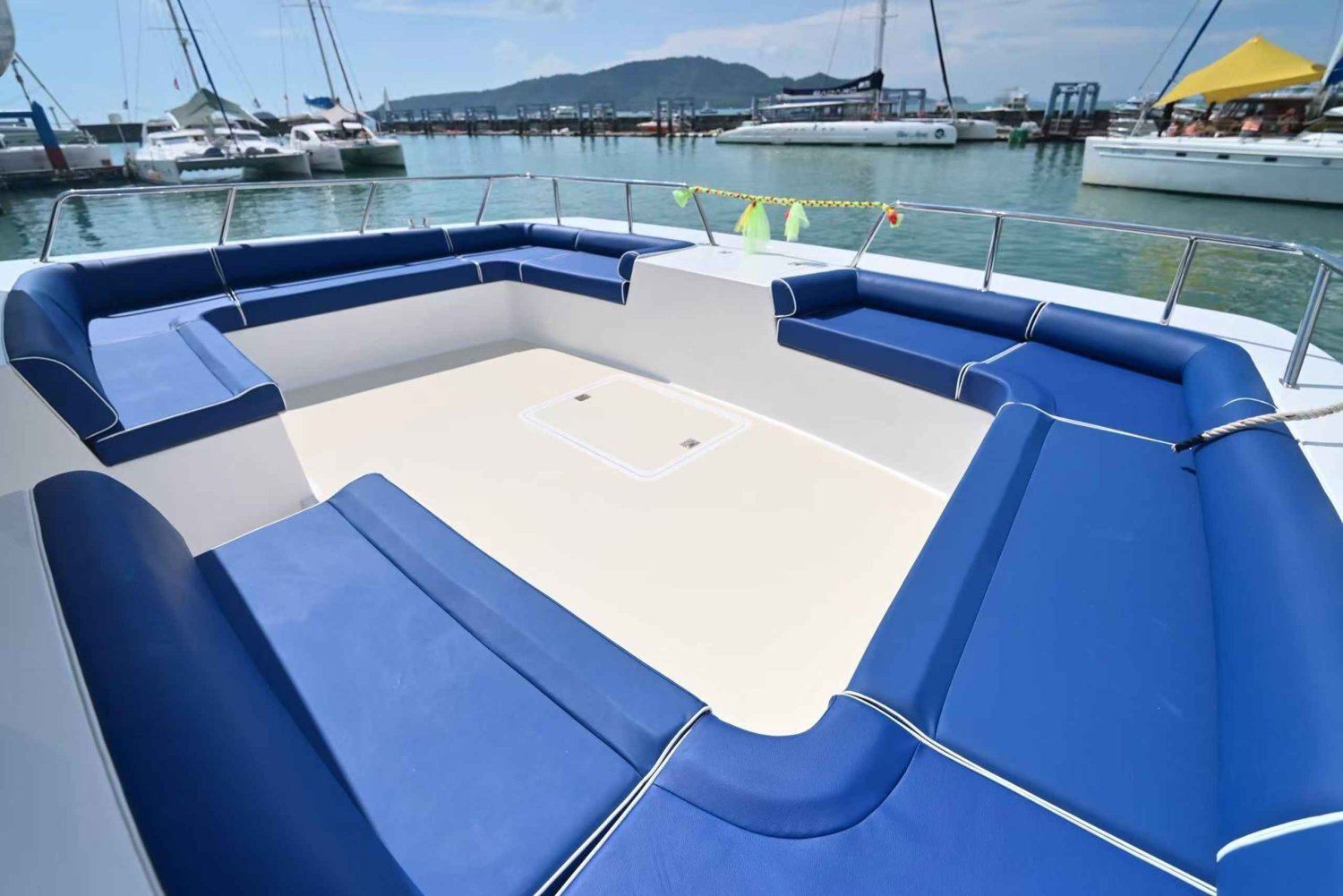Why Choose a Luxury Yacht Experience in Phuket? Not Just a Yacht Tour — A Photo-Worthy Day at Sea This isn't your average catamaran trip. It's a limited-guest luxury experience with stunning views, curated moments, and real highlights that make all the difference. From longtail boat rides into hidden lagoons to complimentary professional photos of your journey—every detail is designed to leave you with more than memories. Step aboard a stylish catamaran with open-air decks, sofa-style seating, and the best sun-drenched photo spots on the water. Whether you're sipping drinks under the sun or posing at the bow with the Andaman Sea behind you, this is a day made to be remembered—and photographed. Explore Four Iconic Destinations – With Experiences No One Else Offers Phi Phi Islands – World-famous for their striking cliffs and turquoise waters Pileh Lagoon – Unlike most tours, you’ll ride a traditional Thai longtail boat into the emerald lagoon itself—slow, graceful, and unforgettable Maya Bay – Step onto the legendary beach made famous by The Beach Maithon Island – A peaceful tropical gem perfect for snorkelers and sea-lovers Signature Experiences That Set Us Apart Professional Travel Photography – Our onboard photographer captures your best moments throughout the day, with 5 free edited photos included Clear-Bottom Kayaking – Paddle over vibrant reefs while watching marine life below Sea Slide & Floating Pool – Fun extras you won’t find on ordinary boat trips Sea Scooter – Glide effortlessly beneath the surface, no experience needed Spacious Open Deck – With no crowds and top-deck open views, you’ll always find the perfect shot or quiet moment Only a limited number of guests per trip. Join us for Phuket’s most photogenic sea day—where every moment is camera-ready, and comfort comes standard.Includes