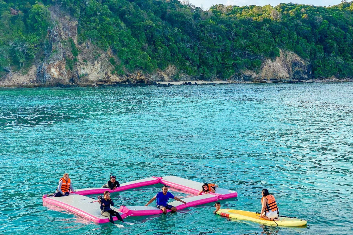 Päivä alkaa hotellilta, josta sinut kuljetetaan satamaan. Satamassa voit nauttia tervetuliaissnackin ja juoman. Sen jälkeen nouset pikaveneeseen tai katamaraanille ja lähdet kohti Phi Phi -saaria. Ensimmäisenä saavut Andamaninmerellä sijaitsevalle Khai-saarelle, joka on kuuluisa valkoisista hiekkarannoistaan ja turkoosista vedestään. Snorklaa meressä, ota aurinkoa rannalla tai kävele ympäri aluetta. Sen jälkeen suuntaat Phi Phi Don -saarelle nauttimaan herkullisen lounaan rannan ravintolassa. Lounaan jälkeen voit mennä uimaan Pileh Lagoon -lahdelle, joka on suosittu snorklauspaikka. Halutessasi voit mennä pitkäperäveneellä (lisämaksu). Vieraile Maya Bayssa. Myöhemmin jatka Monkey Beachille, joka on saanut nimensä siellä elävistä villiapinoista (nykyään saarelle ei pääse). Tutustu Viking Caveen (ohitus), kalkkikiviluolaan, jonka seinillä on maalauksia. Lopuksi palaa Phuketiin ja poistu veneestä laiturilla. Kuljetus takaisin hotelliin. **Uudet vaihtoehdot**: Täydennä merellä vietetty päiväsi unohtumattomalla pysähdyksellä Maiton Islandilla, joka tunnetaan myös nimellä Honeymoon Island – yksityinen paratiisi, joka on kuuluisa kristallinkirkkaasta vedestään ja koskemattomasta kauneudestaan. Nauti toisesta snorklauskerrasta trooppisten kalojen täyttämissä värikkäissä koralliriutoissa, jotka ovat täydellisiä vedenalaisvalokuvaukseen ja merenelävien kohtaamisiin. Maiton Island -kokemukseen sisältyy: Kirkas kajakki upeisiin näkymiin merenpohjasta SUP-lauta rentouttavaan retkeen turkoosilla vesillä Vesiliukumäki suoraan mereen lisää hauskuutta Kelluva matto – rentoudu vedessä ja nauti auringosta Huomautus: Jos valitset tämän Maiton Island -lisäpalvelun, kiertue ei sisällä vierailua Khai Islandille, jolloin voit viettää enemmän aikaa tällä rauhallisella ja vähemmän ruuhkaisella saarella.Includes