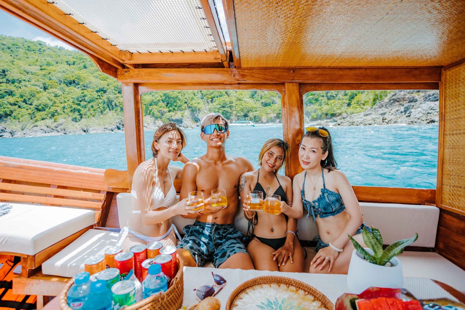 Lähde ylelliseen seikkailuun Matan yksityisellä Longtail-veneellä. Purjehdus ympäri Coral Islandia ja sen lähistöllä koko päivän ohjelmalla.