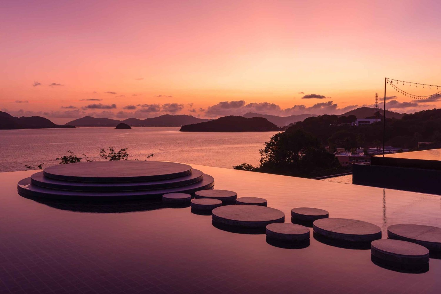 Koe unohtumaton auringonlasku Tu Bar Rooftopissa, korkealla Sri Panwa Phuketin yläpuolella. Tämä tyylikäs kattoterassi tarjoaa korkeatasoisen valikoiman luovia cocktaileja, hienoja viinejä ja ensiluokkaisia alkoholijuomia, jotka kaikki tarjoillaan upean panoraamanäkymän merelle. Tyylikkäällä, rennolla tunnelmallaan ja henkeäsalpaavilla maisemillaan Tu Bar on täydellinen paikka rentoutua, juhlia tai yksinkertaisesti nauttia kultaisen hetken taianomaisuudesta. Nauti valikoiduista baariruokista ja signature-drinkeistä samalla kun katselet taivaan muuttuvan värikuvaksi – todellinen kohokohta Phuketin lomallasi.Includes