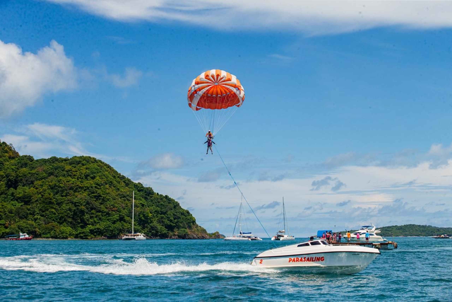 08.45 AM. Embarcadère d'Ao Chalong Rendez-vous avec notre guide au bureau de Nikorn Marine, embarcadère d'Ao Chalong. 09.30. Ao Chalong Pier Départ pour Kahung Beach (Coral Island) 09.45. Kahung Beach (Coral Island) Passez du bon temps sur la plage où l'on trouve des calaos partout sur l'île, des restaurants, des bars de plage et des activités en mer telles que la plongée sous-marine, la marche en mer, le parachute ascensionnel, le bateau banane, le SUP board et le canoë (frais supplémentaires). 11.00 HEURES. Point de plongée avec masque et tuba 10 minutes de bateau rapide pour le point de plongée avec masque et tuba. (En option, vous pouvez vous promener à votre guise sur la plage). 12H00. Plage de Kahung (Coral Island) Déjeuner buffet servi au 'Kahung Restaurant'. 15.00 HEURES. Ao Chalong Pier Arrivée à Ao Chalong Pier et transfert à votre hôtel.Includes