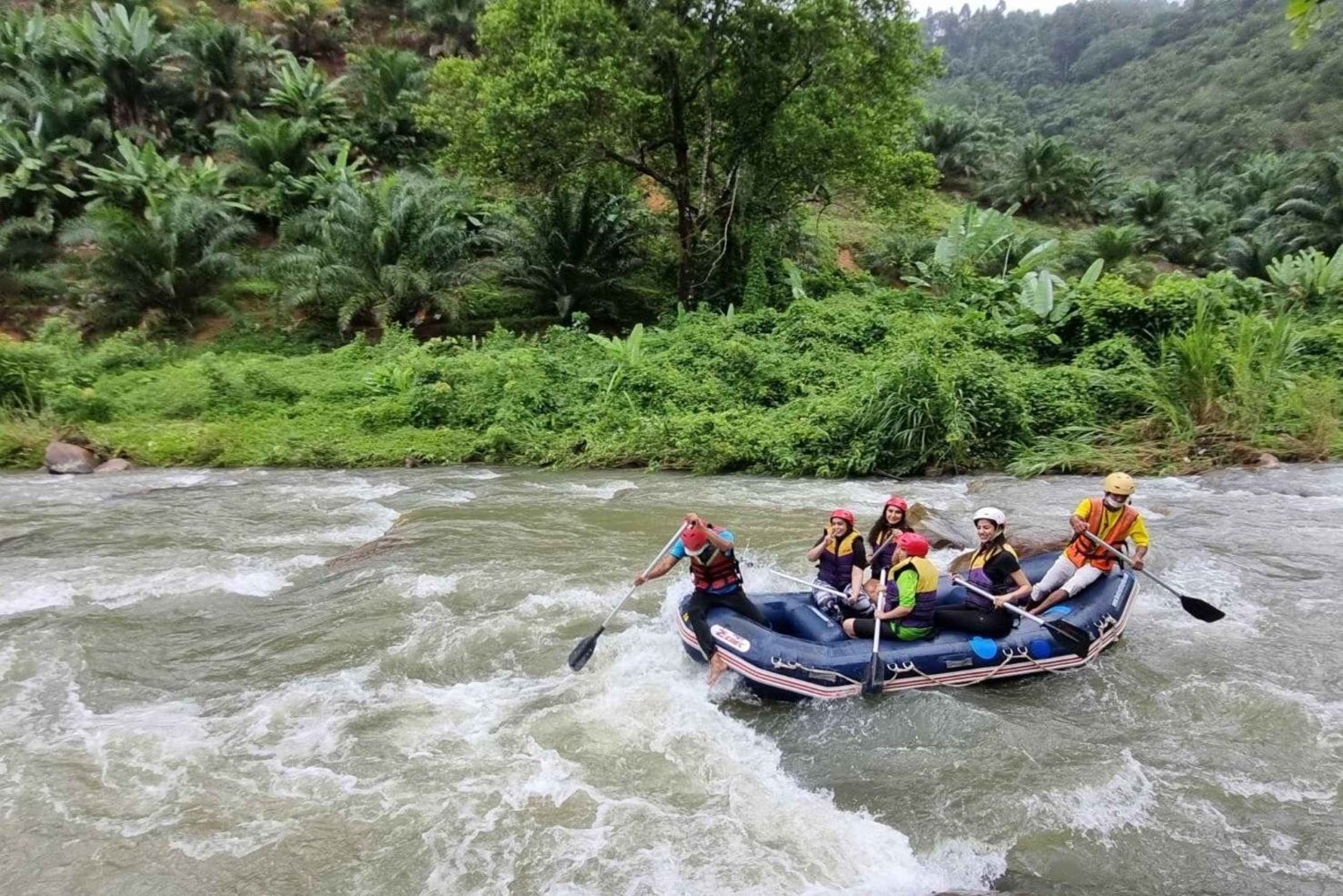 Découvrez la culture locale et vivez des sensations fortes lors de cette aventure guidée d'une journée complète à Phuket, qui comprend une visite d'un temple, une aventure en tyrolienne et une excursion en rafting en eaux vives. Commencez par un trajet de 2 heures et demie jusqu'à la grotte aux singes au temple de Suwan Kuha. Admirez le Bouddha couché de 15 mètres de long. Ensuite, préparez-vous à affronter les rapides lors d'une descente en eaux vives de 5 kilomètres. Ensuite, détendez-vous et ressourcez-vous avec un délicieux déjeuner thaïlandais dans un camp au bord de la rivière, accompagné de fruits frais, de thé aromatique et de café de qualité supérieure. Ensuite, profitez d'une vue imprenable sur la forêt depuis les hauteurs en vous laissant glisser le long de plus de cinq stations de tyrolienne (4 tyroliennes, 1 pont suspendu), en sentant la chaleur du soleil et la brise sur votre peau, et traversez un pont suspendu de 11 mètres pour une sensation supplémentaire ! Les tyroliennes mesurent entre 60 et 250 mètres. Dirigez-vous ensuite vers la cascade de Ton Pariwat, où vous pourrez vous baigner dans la rivière cristalline pour vous rafraîchir le corps et l'esprit. Enfin, retournez au camp pour prendre un thé ou un café avant de regagner votre hôtel.Includes