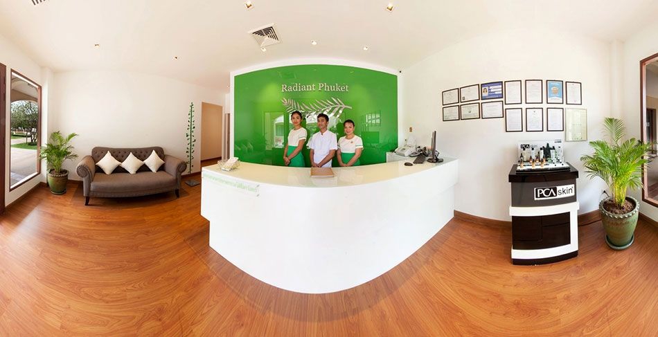La clinique est située à Phuket Town, le centre commercial de Phuket. C'était une décision délibérée pour deux raisons principales. Premièrement, la distinguer des magasins prétendant offrir des services similaires dans les lieux touristiques et aussi donner aux clients une opportunité qu'ils n'auraient peut-être pas appréciée autrement de visiter la vieille ville de Phuket avec son architecture distinctive et ses opportunités de shopping locales. Pour faciliter cela, Radiant propose une prise en charge et un retour gratuits à l'hôtel ou au domicile des clients.