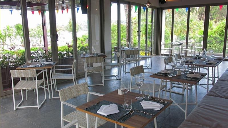 Le Port de Call propose des places assises intérieures climatisées et en plein air avec vue sur les yachts de luxe à moteur et à voile amarrés à la marina, qui est une porte d'entrée vers le magnifique parc marin national de Phang Nga Bay et les sites et activités à découvrir pour les visiteurs.