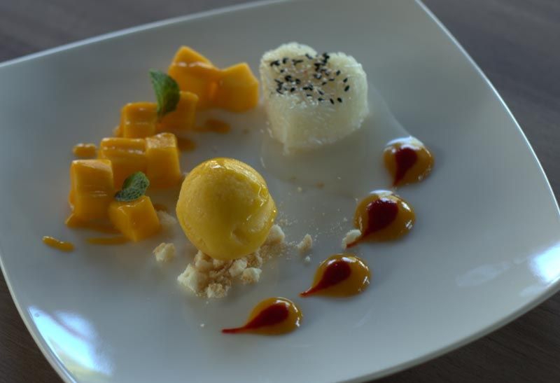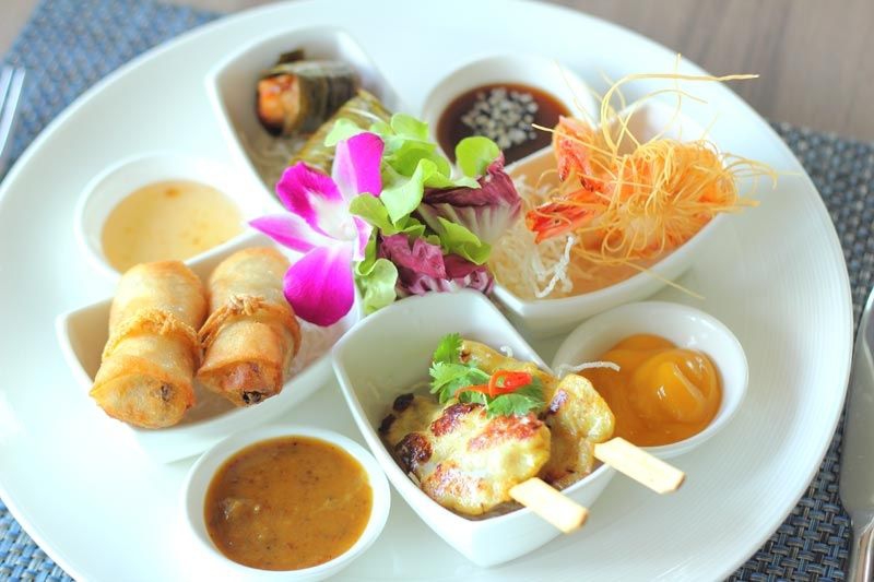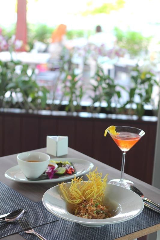 Le restaurant propose une variété de plats thaïlandais et internationaux et est ouvert pour le petit-déjeuner, le déjeuner et le dîner. Les favoris sont le Goong sarong, des crevettes frites enveloppées de nouilles de vermicelles et servies avec une sauce moutarde à la mangue, le Gaeng Phed Ped Yang, un curry rouge avec du canard grillé, des tomates cerises et des raisins, des côtelettes d'agneau grillées avec une sauce spéciale du chef servies avec de la purée de pommes de terre, des épinards sautés et des poivrons sautés et du filet de boeuf de la race angus noir servi avec de la purée de pommes de terre, des carottes bébé, du brocoli, des tomates rôties et du jus de vin rouge.