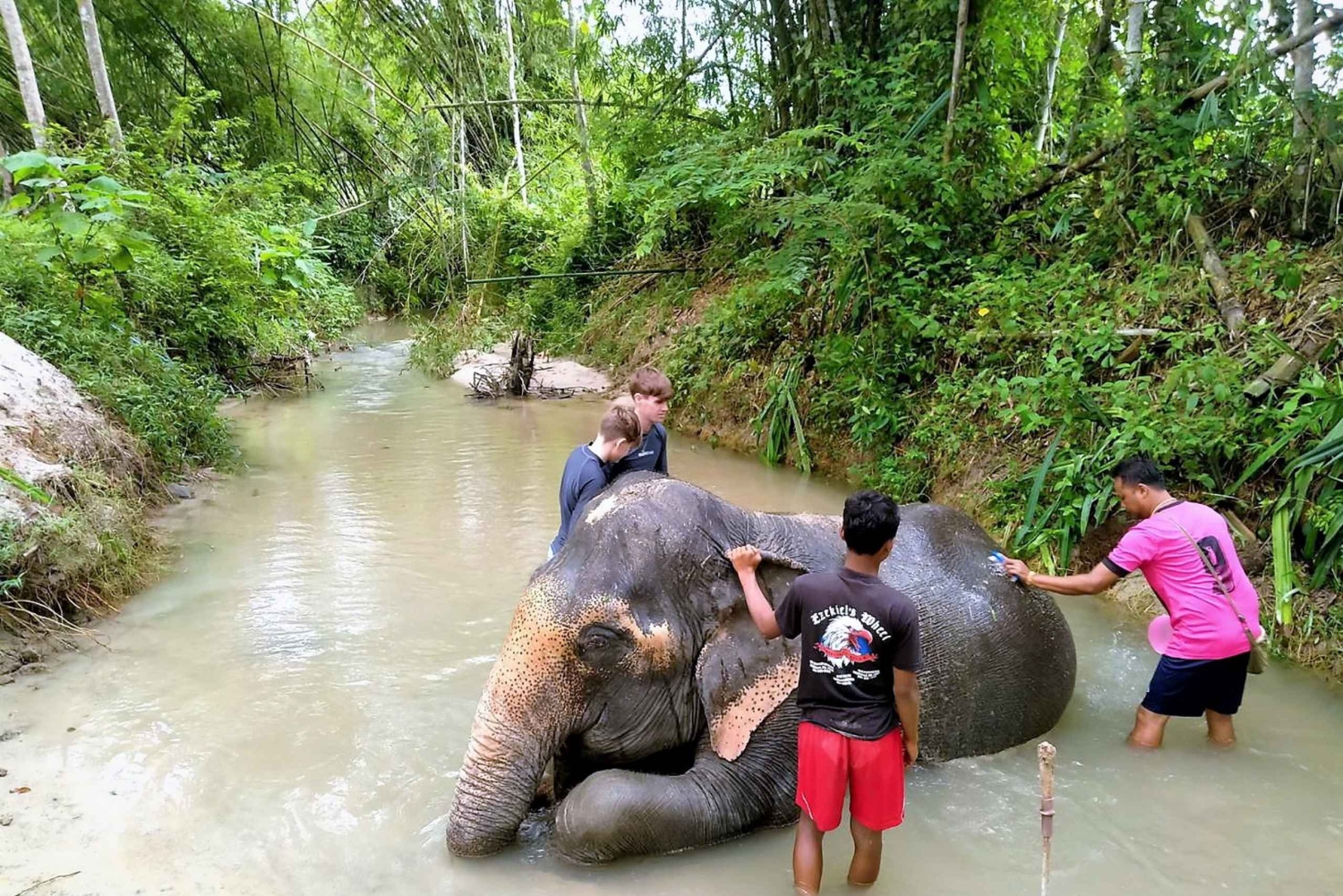 プーケットのホテルからの無料お迎えサービスを利用して、早めにプライベート ツアーで冒険を始めましょう。最初の目的地まで車で向かいながら、タイ南部の地元の生活の光景をお楽しみください。 ウミガメ保護センターを訪れてウミガメを間近で観察しましょう。彼らの種族と彼らがどのように救出されたかについて聞いてください。保護センターを探索して、さまざまなサイズ、種類、色のカメに会いましょう。 次に、ワン キアン クー滝では、地元の漕ぎ手が川岸で熱心に私たちを待っています。巨大な竹製のいかだに乗りながら、キアン クー滝の流れに沿って漕ぎ手が巧みにいかだを操縦する間、野生動物に注意してください。バンブーラフティングで忘れられない体験をした後は、透き通ったさわやかな水で遊んでください。 ここから、ワン キアン クー滝にある地元のレストランに向かい、おいしい南部タイのセット ランチを味わいましょう。 その後、ワット ラック ケンを訪れます。この地域で最も古く、最も重要な寺院の 1 つで、仏陀の聖遺物の物語を聞いてみましょう。 その後、ゾウの保護区を訪れ、人懐っこい巨人たちと出会う次の冒険に出発しましょう。彼らの個々の物語と彼らがどのように救出されたかについて聞いてください。愛情深い象の世話人 (象使い) と一緒に象に食事を与えて象と触れ合い、楽しい泥スパで象をお風呂に入れましょう。最後に、インスタグラム用に新しいエキサイティングな写真を撮りながら、自分の手で餌をあげましょう。 最後に、プーケットに戻る前に、「警察ボート 813」の史跡に少し立ち寄ります。この場所は、2004 年の津波の際の自然の驚異的な力の証拠として機能します。 冒険的な 1 日を過ごした後は、バンに乗ってホテルに戻ります。Includes
