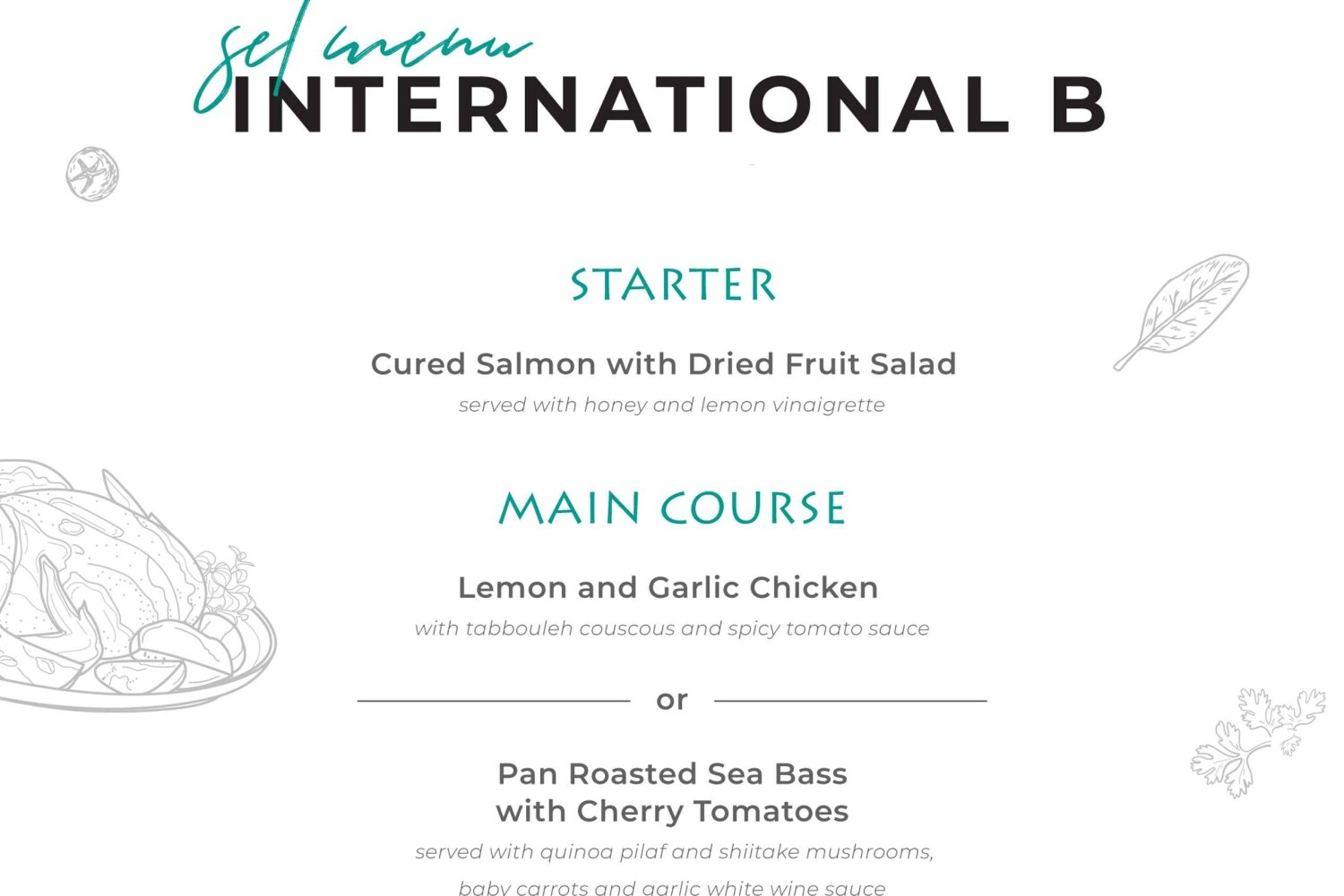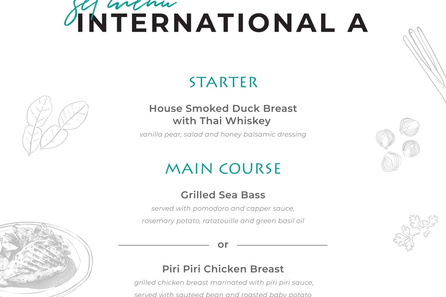 - タイ料理、イタリアン、インターナショナル料理からお選びいただき、美味しいお食事をお楽しみください。