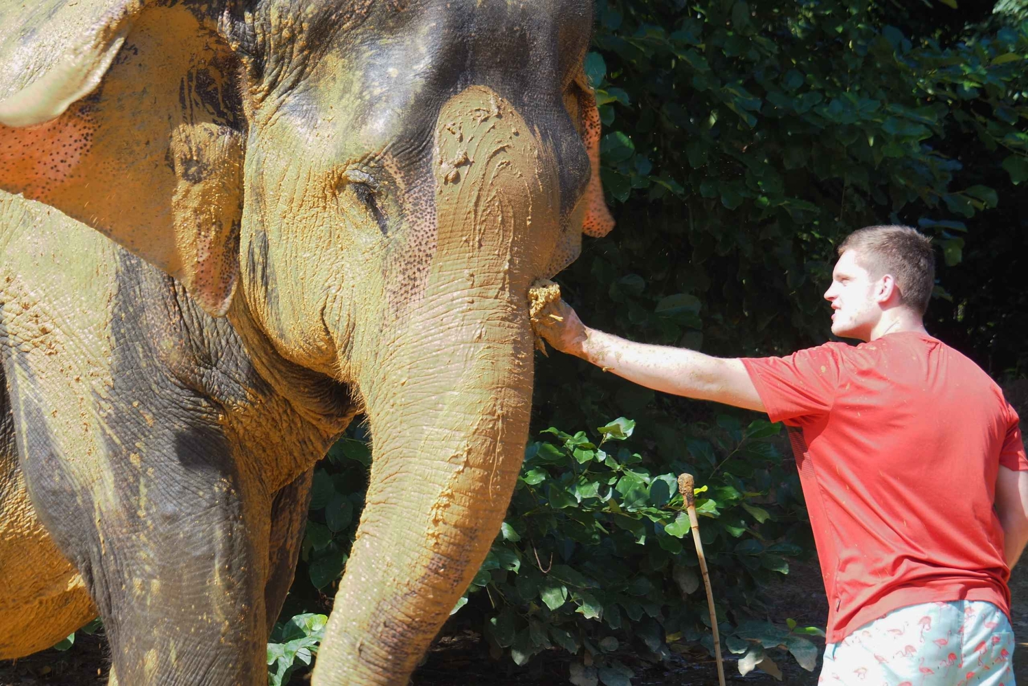 - 윤리 캠프에서 코끼리 목욕시키기 및 먹이 주기