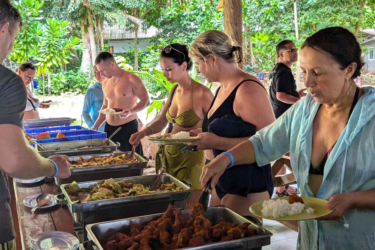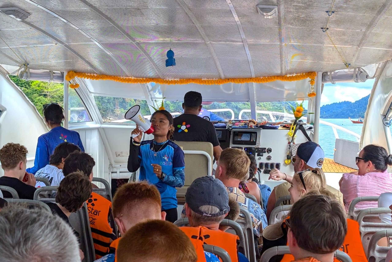 모든 것이 포함된 일일 투어로 낙원 같은 수린 제도를 방문해보세요. 쾌속선이나 더 큰 쌍동선 보트를 타고 이동하세요. 투어 시작부터 끝까지 음식과 간식이 제공되므로 배고프지 않으실 겁니다. 매우 세심하고 친절한 직원이 하루 종일 여러분을 돌보며 잊지 못할 투어를 선사합니다. 카오락의 호텔에서 픽업하면서 하루를 시작하세요. 오전 8시 30분에 부두에서 체크인하시면 친절한 직원이 여러분을 맞이해 드립니다. 스노클링 핀을 선택하실 수 있습니다. 출발 전에 커피와 차를 제공하며, 아침 식사로 간단한 간식도 제공됩니다. 부두에서 출발하기 전에 영어 구사 직원이 안전 브리핑을 진행하고 여행 일정표에 대한 자세한 정보를 제공합니다. 무코 수린 국립공원에 도착하면, 다채로운 물고기와 산호가 가득한 첫 번째 스노클링 지점에서 시작합니다. 다음으로, 모켄 마을을 방문합니다. 해양 집시의 지역 사회가 어떻게 살고 있는지 보고, 현지인들이 섬에서 수작업으로 만든 가장 독특한 기념품을 쇼핑하세요. 총캇 만에서 다양한 음식, 음료, 제철 과일이 제공되는 맛있는 점심 뷔페를 즐겨보세요. 점심 식사 후 자유 시간을 보내며 청록색 바다와 깨끗한 백사장에서 휴식을 취하고 수영을 즐겨보세요. 오후에는 수린섬의 아름다운 스노클링 명소 2곳에서 수중 낙원을 발견해 보세요. 하루 동안의 잊지 못할 추억을 간직한 채 팡응아의 부두로 돌아가 오후 5시쯤 도착합니다. 갓 준비된 간식, 바비큐 고기, 맛있는 코코넛 아이스크림이 여러분을 기다리고 있을 것입니다. 미니밴이 카오락의 호텔로 안전하게 모셔드리며 이 아름다운 하루를 마무리합니다.Includes