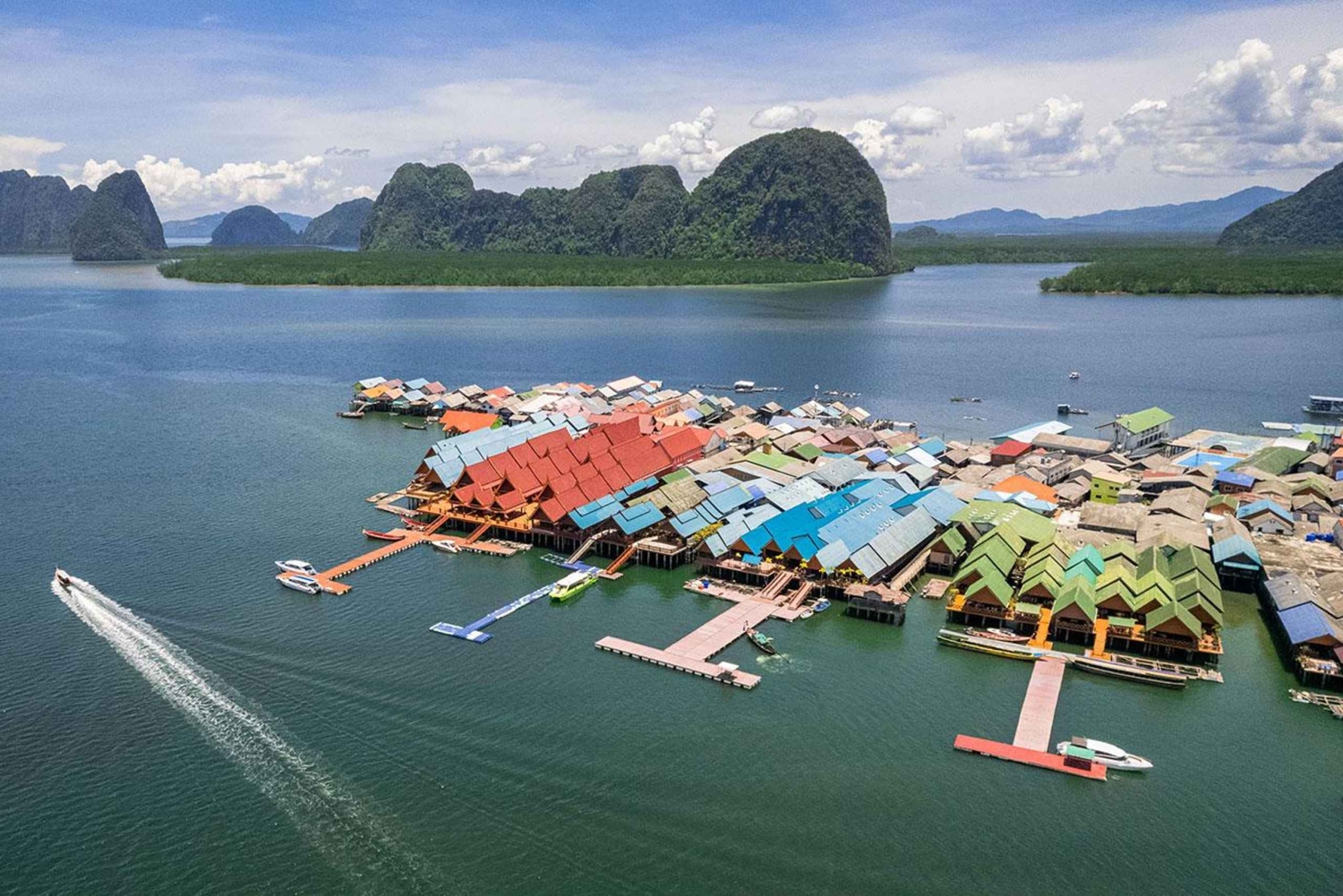 호텔 픽업 서비스로 하루를 시작한 후 전통 롱테일 보트를 타고 청록색 바다를 가로지르는 여행을 시작하세요. 고전 영화 '황금 총을 든 사나이'의 배경이 된 상징적인 제임스 본드 섬으로 향하면서 아름다운 경치를 감상하세요. 제임스 본드 섬에서 사진 촬영을 마친 후에는 코 탈루에서 바다 동굴과 에메랄드빛 라군을 지나며 팡아 베이의 때 묻지 않은 자연에 흠뻑 빠져보세요. 그런 다음 매력적인 어촌 마을에 위치한 판예 레스토랑에서 맛있는 태국식 점심 식사를 즐겨보세요. 고대 동굴 벽화로 유명한 카오 킨을 방문해 모험을 계속하세요. 이 매혹적인 유적지를 탐험하면서 이 지역의 풍부한 역사와 문화에 대해 알아보세요. 이 투어는 독특한 풍경과 활기찬 현지 생활에 흠뻑 빠져볼 수 있는 충분한 시간을 제공합니다. 수완쿠하 사원에서 복잡한 조각상과 조각품을 감상하고 경내를 돌아다니는 친절한 원숭이들과 교감하며 여행을 마무리하세요. 마지막으로 호텔에 도착하면 모험과 문화, 자연의 아름다움으로 가득한 잊을 수 없는 하루를 완벽하게 마무리할 수 있습니다.Includes