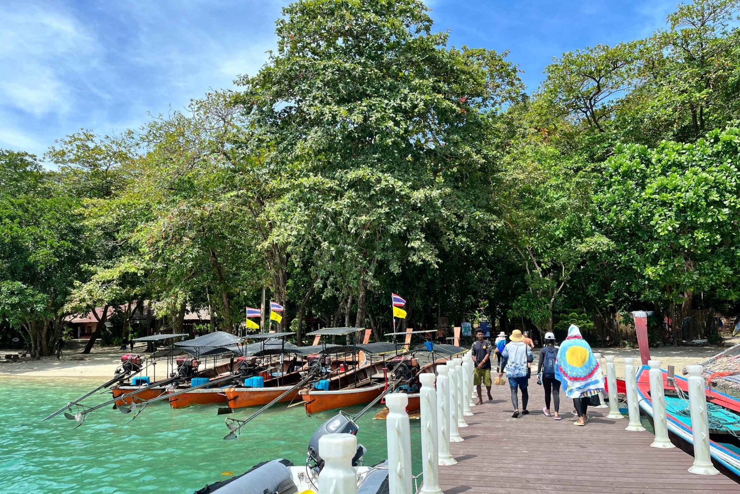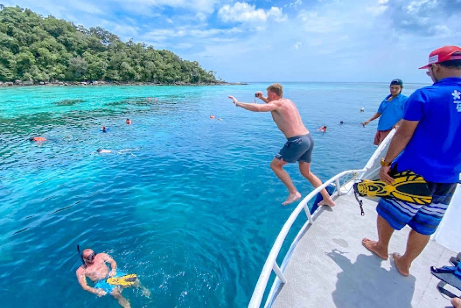 푸켓의 호텔에서 픽업 서비스로 하루를 시작하세요. 밴을 타고 해변 풍경을 지나며 아름다운 산의 풍경과 푸른 나무를 감상하세요. 탑 라무 부두에 도착합니다. 차, 커피, 스낵, 음료를 즐기세요. 스피드보트 크루즈를 타고 태국 최고의 스노클링 장소인 안다만에서 스노클링의 천국인 수린 제도로 이동하여 수중 세계와 맑고 푸른 바닷물에 빠져보세요. 첫 번째 방문지는 니모 또는 파인애플 만에서 스노클링을 체험하는 것입니다. 트윈 비치에서 수영을 즐기며 아름다운 해변과 웅장한 경치를 감상하세요. 모간 마을을 방문해 현지인들을 만나고 그들의 독특한 문화와 가옥을 둘러보세요. 그들의 생활 방식에 대해 자세히 알아보세요. 수린 국립공원의 해변 점심 뷔페로 향하기 전에. 점심 식사 후에는 아름다운 매야이 베이와 타오 베이로 향하세요. 이곳에서 스노클링을 즐기고 숨막히는 산호초를 탐험한 후 다시 부두로 돌아와 멋진 추억을 안고 숙소로 돌아오세요.Includes