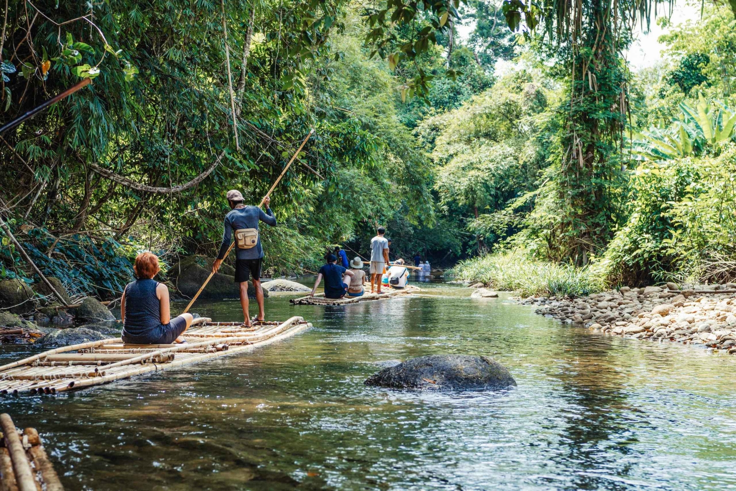 - 카오락 국립공원에서 대나무 뗏목을 타고 강을 따라 크루즈 여행하기