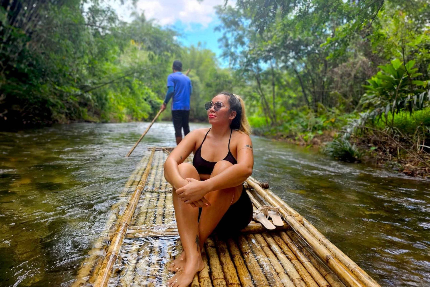 - 대나무 뗏목을 타고 드라이버를 타고 내려가기