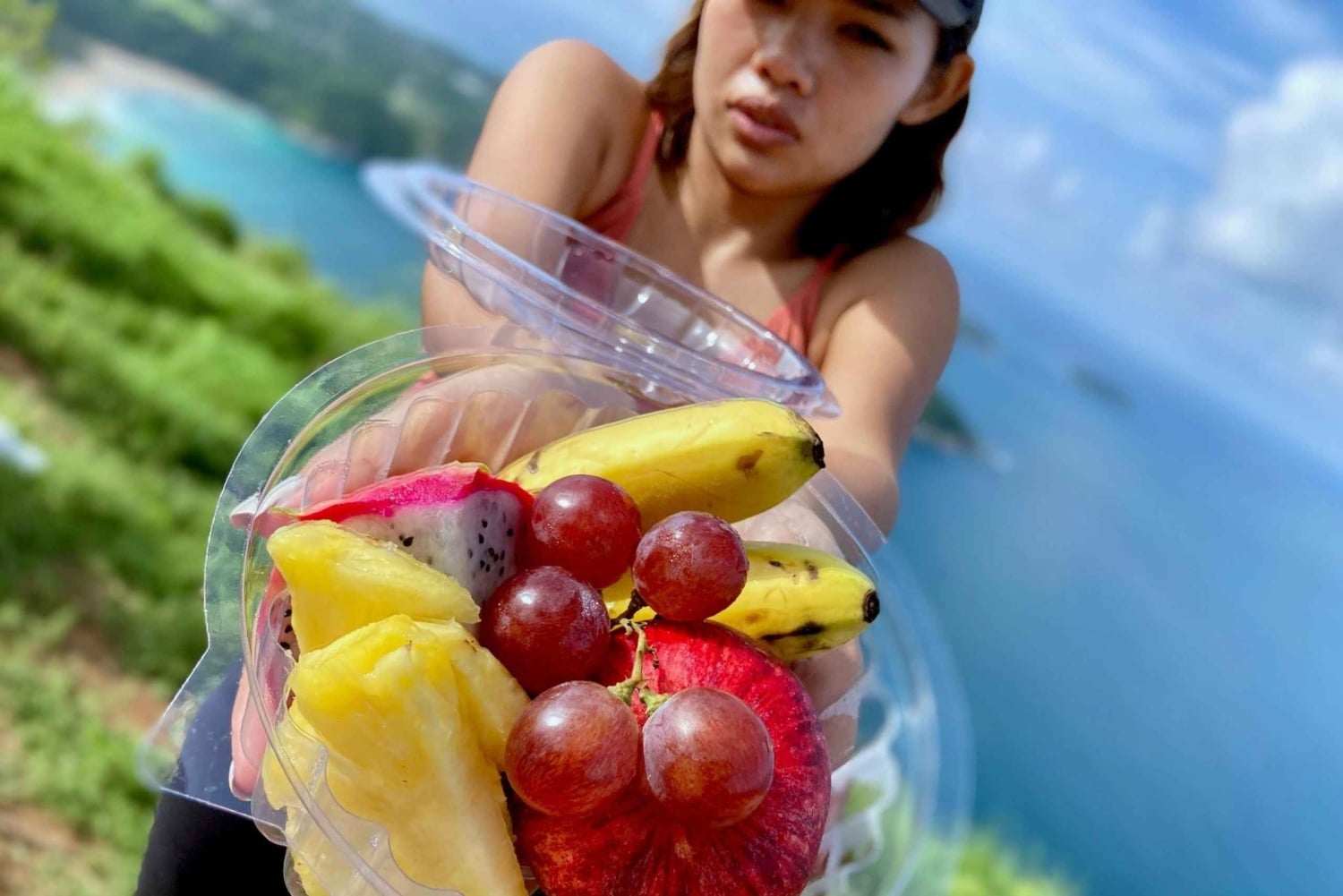 고무나무 농장을 통과하는 일출 하이킹에 참여하고 열대우림 언덕을 올라 현지 호스트가 안내하는 비밀 전망대에 도착하세요. 자연 애호가, 탐험가 및 하이커는 관광객이 붐비기 전 푸켓이 가장 좋은 이른 아침에 푸켓을 탐험하는 것을 좋아할 것입니다. 현지 풍미가 가득한 피크닉 아침 식사를 즐기고 나중에 유명한 카론 뷰포인트를 방문하여 경험을 담은 멋진 사진을 추가하세요. 현지 호스트와 함께라면 관광객이 아닌 현지인처럼 푸켓을 즐기고 친구를 사귈 수 있어 더욱 특별한 경험을 할 수 있습니다. 일정 (토요일, 일요일 이용 가능) 오전 06:30 - 투어 밴이 로비에서 픽업 대기 중이며 현지 호스트가 만나서 인사합니다. 오전 7:30 - 비밀 트레킹 기슭에 도착하여 정상에 오르기 위한 장비를 준비합니다. 트레일 러닝 경험이 풍부한 현지 호스트가 스트레칭과 산책을 통해 준비운동을 도와줍니다. 오전 8시 - 이 시간쯤이면 이미 정상으로 향하는 트레킹이 시작됩니다. 열대 식물로 뒤덮인 언덕의 트레일을 통해 정상에 도착하는 데 30~40분 정도 걸립니다. 오전 8시 40분 - 정상에 도착해 상쾌하고 감탄이 절로 나오는 멋진 전망과 경치에 보상을 받습니다. 약 45분 동안 휴식을 취하며 스트레칭을 하고 경치를 감상하며 인스타그램 피드에 올릴 만한 사진을 클릭합니다. 오전 9시 - 정상에서 경치를 즐기면서 피크닉 조식/차, 현지의 신선한 과일, 현지 별미와 물을 즐깁니다. 호스트가 여러분과 함께 푸켓 현지인으로서 푸켓에서의 경험과 트레일 러닝 또는 좋은 대화를 나눌 수 있는 모든 주제에 대해 자세히 알려줍니다. 오전 9:30- 이 시간에는 기지로 돌아와 투어 밴에 탑승하여 다음 명소인 유명하고 잘 알려진 카론 뷰 포인트로 향합니다. 오전 9시 45분- 카론 뷰포인트에 도착해 아름다운 해변의 경치를 감상합니다. 더 많은 사진, 더 많은 재미... 그리고 도중에 아름다운 비밀 전망대 카페에서 차/커피를 마시러 들러보세요. 오전 11:00 - 투어를 마무리하고 호텔로 돌아갑니다.Includes