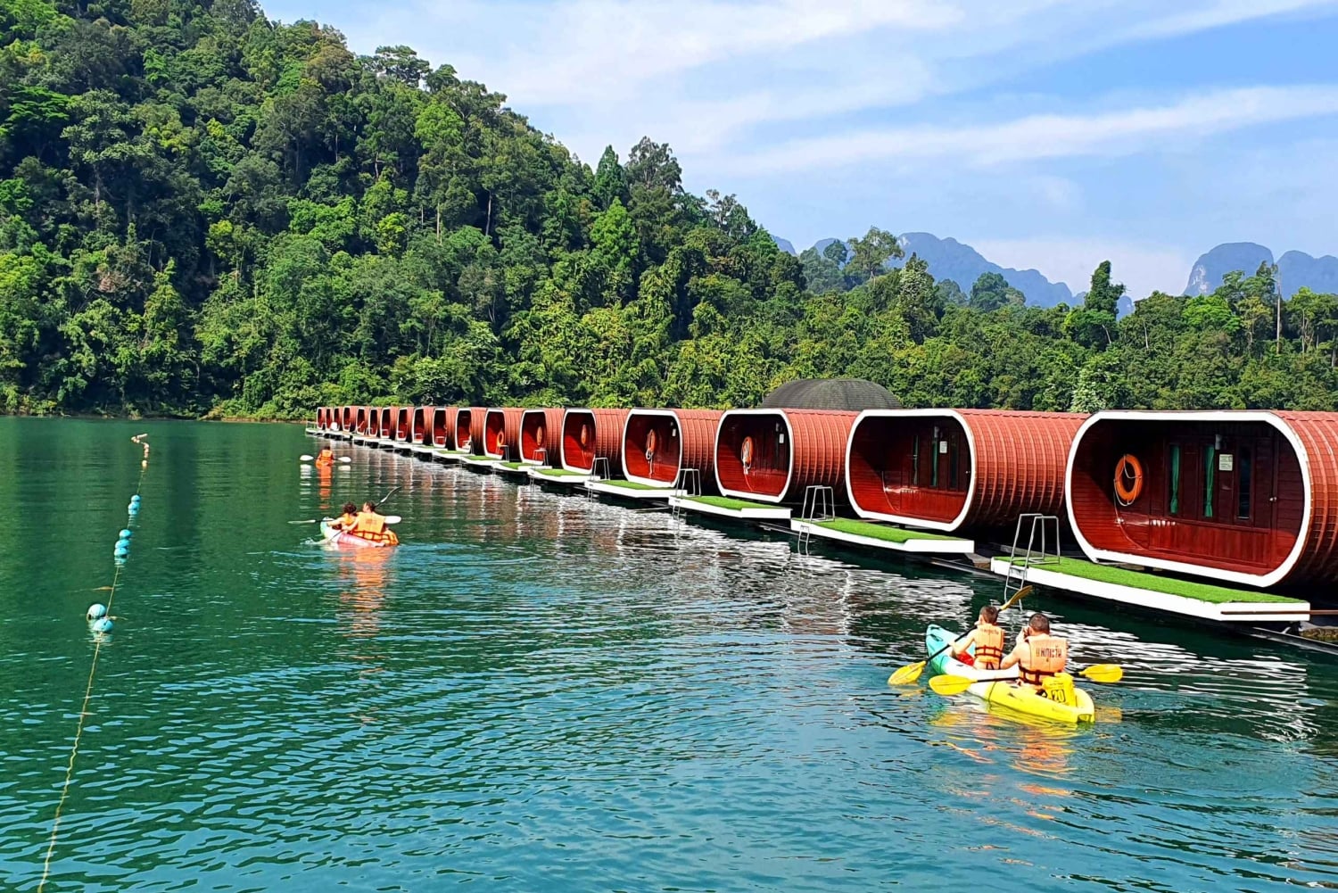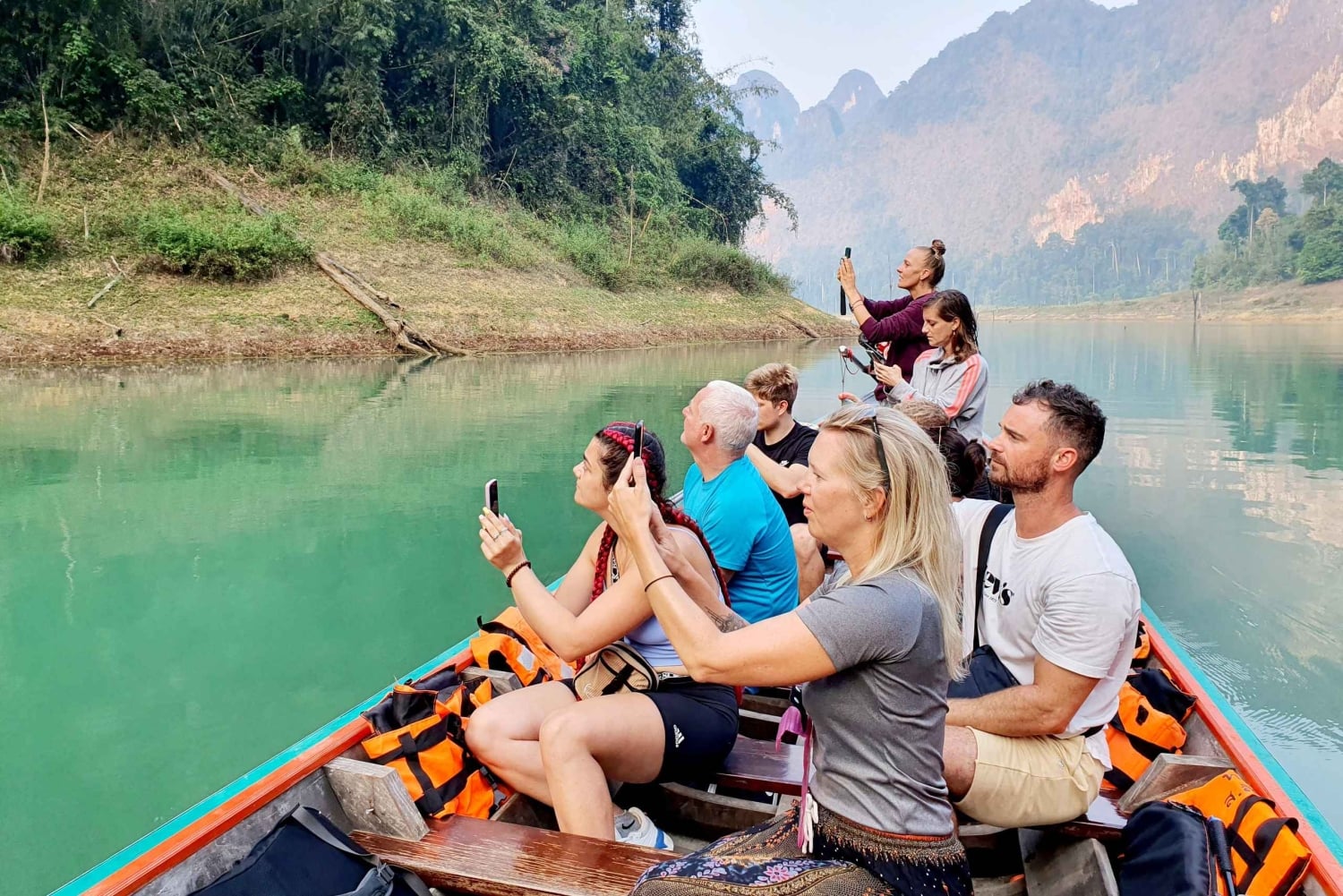 호텔 픽업 서비스를 이용하면, 초우란 호수 선착장으로 이동합니다. - 영어 투어 가이드가 중요한 정보를 안내하고 티켓을 구매해 드립니다. (모든 비용 포함) 전문 선장이 운항하는 롱테일 보트를 타고 석회암 산으로 둘러싸인 자연 속으로 항해합니다. 래프팅 하우스까지 가는 길에 아름다운 경치를 감상할 수 있으며, 가끔 섬에 야생동물이 모습을 드러내기도 합니다. 카약, 수영, 일광욕을 즐기거나 푸타완 래프하우스에서 호수 최고의 수상 레스토랑 중 한 곳에서 휴식을 취하세요. 정오 12시 - 래프하우스에서 태국 음식과 제철 과일로 점심 식사. 식사 후 롱테일 보트를 타고 다이아몬드 동굴 탐험과 석회암의 매혹적인 형상을 감상합니다. 이어 정글로 이동하여 열대우림 속 약 1km 하이킹을 즐기세요. 롱테일 보트를 타고 호수의 상징인 카오 삼 글루르(Khao Sam Glur)로 이동하여 멋진 사진을 찍고 선착장으로 돌아옵니다. 오후 4시 - 선착장에 도착하여 미니밴을 타고 호텔로 돌아갑니다.Includes