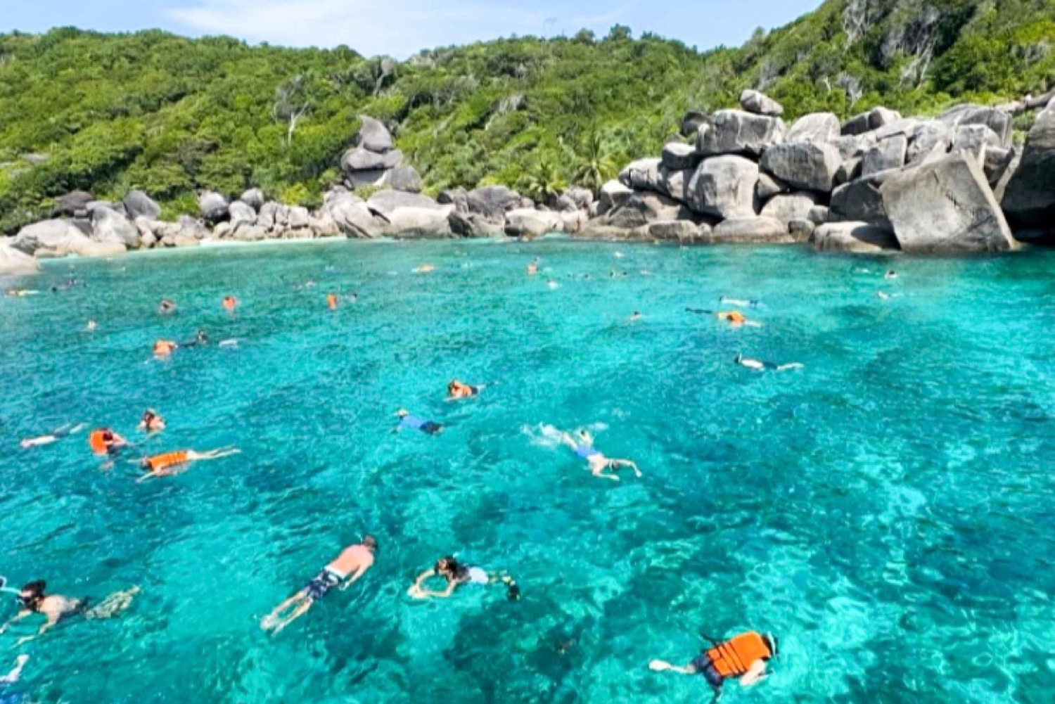 - 날씨나 해상 상황에 따라 안전을 위해 프로그램이 변경될 수 있습니다. 국립공원 입장 티켓을 구매하려면 예약 시 성명, 여권 신분증, 생년월일을 알려주셔야 합니다. 요청 시 채식 메뉴가 제공됩니다. 드물게 투어를 취소해야하는 경우 사전에 통지하고 다른 투어 날짜, 대체 투어 또는 전액 환불을 제공합니다. 국립공원 입장료 (성인 500바트, 어린이 200바트) 부두 도착 시 준비해 주세요.
