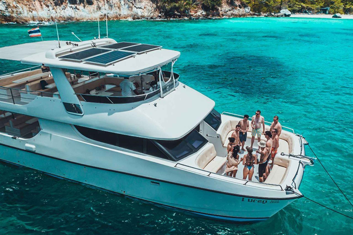 선상에서 제공되는 생수와 청량음료 제철 과일 보트에서 즐기는 점심 식사 해변용 신발 비치 타월 마스크 및 스노클링(일회용 마우스피스 포함) 외국인 방문객을 위한 국립공원 입장료(선택 시) 단체 여행자 보험 푸켓 왕복 교통편(선택한 경우)Important Information