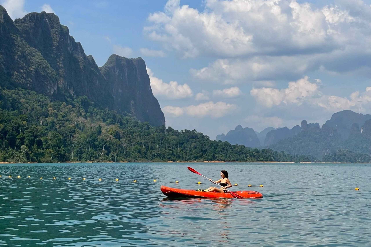 차우란 호수의 즐거움을 경험할 준비를 하세요. 우뚝 솟은 산과 에메랄드빛 호수의 물, 댐에 서식하는 야생동물과 함께 자연의 평온함에 빠져보세요. 스포츠와 레저 모험에 참여하여 몸과 마음에 활력을 되찾으세요. 1일차 호텔에서 픽업과 함께 밝고 일찍 모험을 시작하세요. 도중에 경치 좋은 전망대에서 잊지 못할 순간을 포착하고 차우란 호수에 도착하면 전통 롱테일 보트에 탑승하세요. 유명한 구이 린 암석에서 사진을 찍고 정글 워크에 참여하거나 대나무 래프팅을 체험하고 코랄 동굴을 탐험하는 자유 시간을 즐겨보세요. 그 후 수상 리조트에 도착해 뷔페 점심을 즐기세요. 객실에 체크인한 후 카약을 타고 호수 탐험을 시작하세요. 오후에는 에메랄드빛 호수 옆에서 커피, 차, 과일 주스, 제철 과일을 즐기며 휴식을 취하세요. 그런 다음 롱테일 보트를 타고 카오속 야생동물 사파리를 방문한 후 리조트로 돌아와 맛있는 뷔페 저녁 식사를 즐기세요. 2일차 커피 또는 차로 하루를 일찍 시작하고 또 다른 모험의 날로 향하세요. 가이드의 안내에 따라 셀프 패들 카약을 타고 열대우림 캐노피에서 조류 관찰을 경험해 보세요. 리조트로 돌아와 아침 식사를 하고 다음 액티비티를 준비하세요. 카오속(본토) 국립공원으로 여행을 계속하세요. 대나무 뗏목 패들러와 함께 평화롭고 울창한 속 강을 따라 출발해 첫 번째 목적지로 이동하면서 태국 남부의 현지 생활상을 둘러보세요. 드라마틱하게 우뚝 솟은 산의 멋진 경치를 감상하고 이 지역에 서식하는 다양한 새, 파충류, 야생 난초, 원숭이를 만날 수도 있습니다. 강둑에서 휴식을 취하고 대나무로 만든 신선한 커피를 마셔보세요. 대나무로 만든 커피를 마셔보세요. 이후에는 현지 레스토랑으로 이동해 가이드가 알려주는 태국 전통 방식으로 현지 점심 요리를 직접 만들어 보세요. 태국 남부 별미의 맛을 발견하면서 한 입 한 입 음미해 보세요. 밴에 다시 올라타 메야이 폭포에 잠시 들러 물줄기가 쏟아지는 소리를 들으며 독특한 풍경을 감상하세요. 그 후 51종의 포유류, 300종의 조류, 야생 난초가 서식하는 국립공원의 탁 트인 전망을 감상할 수 있는 카오속 뷰포인트에서 멋진 사진을 찍어보세요. 마지막으로 코끼리 보호구역을 방문하여 친근한 코끼리들을 만나보세요. 코끼리 개개인의 사연과 코끼리들이 어떻게 구조되었는지 들어보세요. 코끼리를 위한 사랑스러운 코끼리 사육사(마후트)가 코끼리를 위해 약이 되는 식사를 만들고 (마후트)에게 코끼리를 위한 약식을 만드는 방법을 배우고, 재미있는 머드 스파에서 코끼리 목욕을 시켜보세요. 마지막으로 코끼리에게 직접 먹이를 주면서 소셜 미디어 페이지에 올릴 멋진 사진을 찍어 보세요. 코끼리의 장난기 가득한 본성을 즐기면서 손에 닿는 코끼리 몸통의 간지러움을 느껴보세요. 편안하게 호텔로 이동합니다Includes