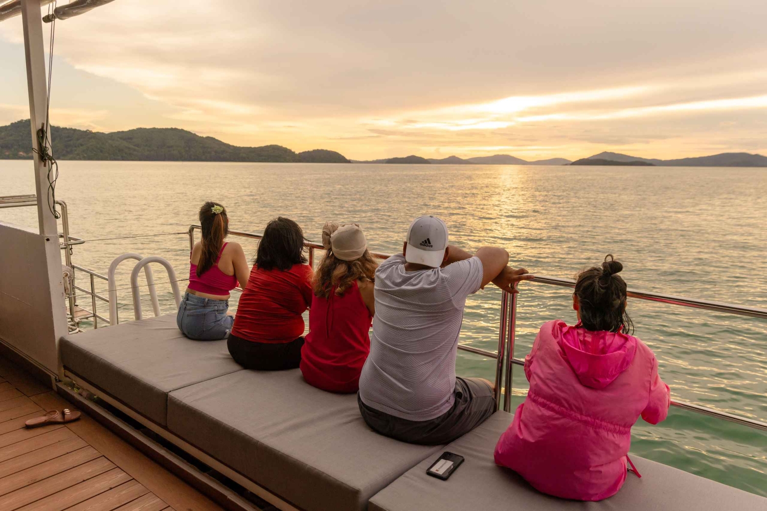 호텔 픽업, 드롭 서비스 환영 음료 프리미엄 태국, 중식, 일식 뷔페 점심 식사 선셋 크루즈 라이트 뷔페 디너 수상 액티비티(워터 슬라이드, 패들 보드, 워터 해먹) 풀 조명과 음향 시스템을 갖춘 라이브 DJ 파티 무료 청량음료 국립공원 입장료 여행자 보험 투어 가이드 타월Important Information