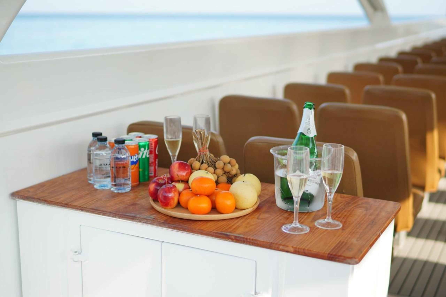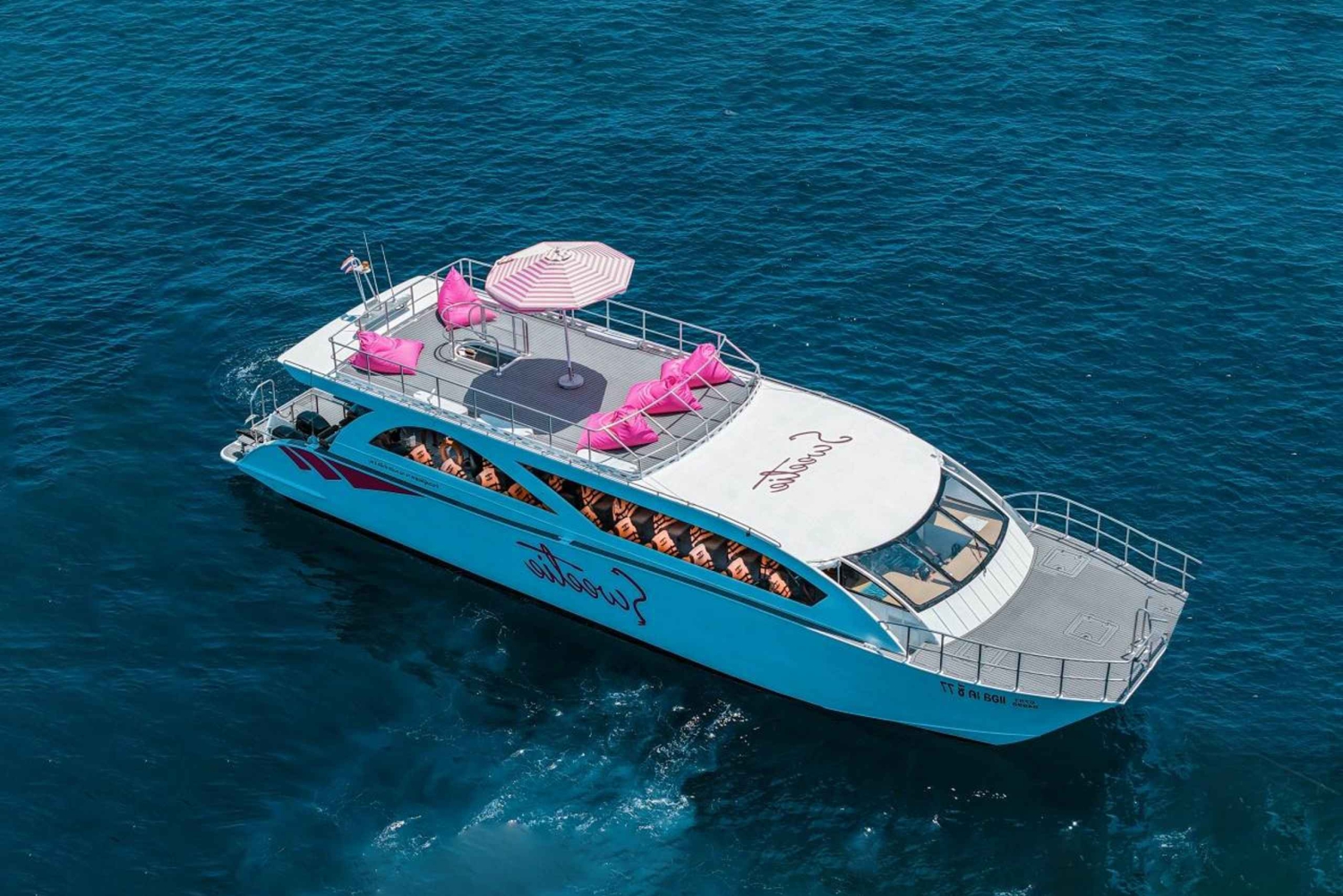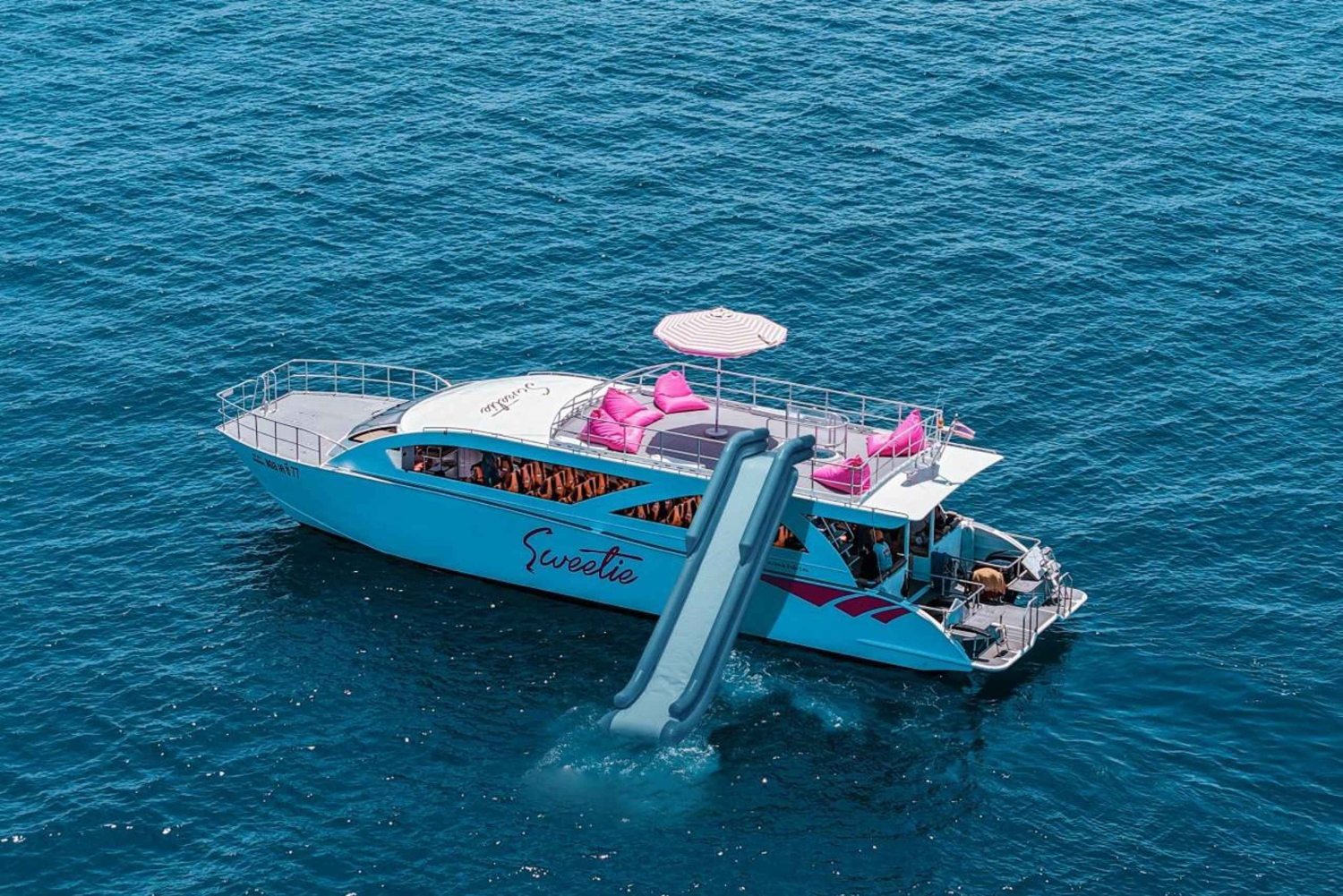 푸켓에서 출발하는 스위티 고속 쌍동선 투어를 선택해야 하는 이유 빠르고, 재미있고, 편안한 여행 스위티는 속도와 편안함을 결합한 2025년 출시 고속 쌍동선입니다. 뱀부섬, 피피섬, 마야베이, 마이톤섬을 방문하고 스노클링을 즐길 수 있는 두 곳의 정류지를 만나보세요. 넓은 야외 갑판에는 모두가 앉을 수 있는 공간이 마련되어 있어 멀미를 줄이면서도 활기찬 분위기를 유지할 수 있습니다. 온종일 모험을 즐기고 싶은 가족, 단체, 바다를 사랑하는 사람들에게 안성맞춤입니다. 편안함과 스타일을 고려한 디자인 모든 승객은 편안한 좌석에 앉을 수 있으며, 보트의 깔끔하고 현대적인 디자인 덕분에 모든 순간이 사진으로 남을 만큼 아름답습니다. Sweetie의 레이아웃은 크루즈를 즐기면서 휴식을 취하고, 탐험하고, 멋진 사진을 찍을 수 있도록 초대합니다. 2025년 출시 — 새롭고 현대적인 디자인 세련된 선과 탁 트인 데크 전망, 넉넉한 공간을 갖춘 스위티는 인스타그램에 올릴 만한 사진을 찍기 좋은 섬을 순항하며 신선하고 현대적인 경험을 선사합니다. 경험할 수 있는 것 뱀부섬 — 부드러운 백사장에서 수영이나 일광욕을 즐기세요. 피피섬과 마야베이 — 피피돈에서 태국식 점심 뷔페를 즐기고, 원하는 경우 마야베이에 상륙할 수 있습니다. 마이톤 섬 — 맑은 물에서 스노클링을 즐기고, 바다 미끄럼틀, SUP 또는 바닥이 투명한 카약 타기를 즐겨보세요. 바이킹 동굴 & 필레 라군 — 우뚝 솟은 석회암 절벽을 지나 보트에서 필레 라군을 탐험하세요(착륙 불가). 여행 일정 스냅샷 08:30~09:30 — 호텔 픽업 10:30 — 찰롱 부두에서 출발 11:30 — 대나무섬 도착 12:50 — 피피돈에서 점심 식사 14:00 — 피피레 근처에서 스노클링 14:50 — 바이킹 동굴 관광 및 마야 베이 15:50 — 마이톤 섬 스노클링 및 수상 액티비티 17:40 — 과일과 간식이 제공되는 선셋 크루즈 18:10~18:30 — 부두로 돌아가 호텔 하차 참고: 일정은 날씨 및 해상 상황에 따라 달라질 수 있습니다. Sweetie가 최고의 선택인 이유 스위티는 하루 동안 신속하고 편안하게 여러 섬을 이동하며 풍부한 경험을 원하는 여행자를 위해 설계되었습니다. 두 곳의 스노클링 명소, 여러 경치 좋은 곳, 넓은 현대식 쌍동선을 갖춘 이 투어는 처음부터 끝까지 생동감 있고 기억에 남는 모험을 선사합니다.Includes