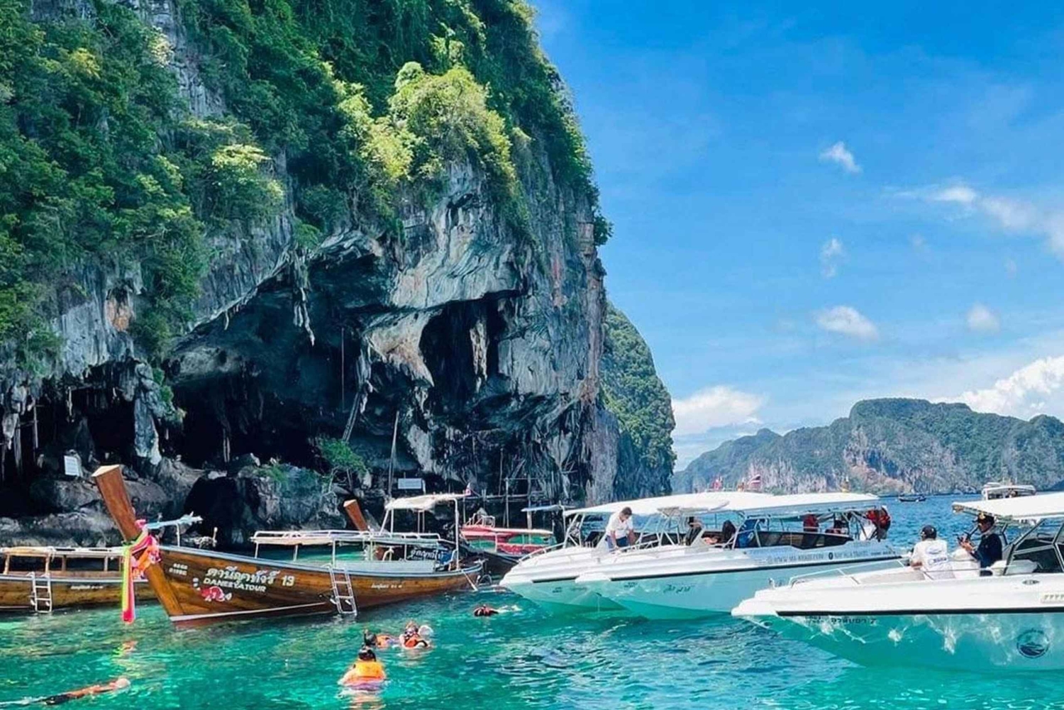 푸켓에서 마야 베이, 로 사마 베이, 피피카이 섬으로 가는 개인 스피드 보트 전세를 즐겨보세요. 유연한 여정으로 원하는 대로 하루를 맞춤 설정하세요. 해변에서 수영과 스노클링을 즐기며 휴식을 취하세요.