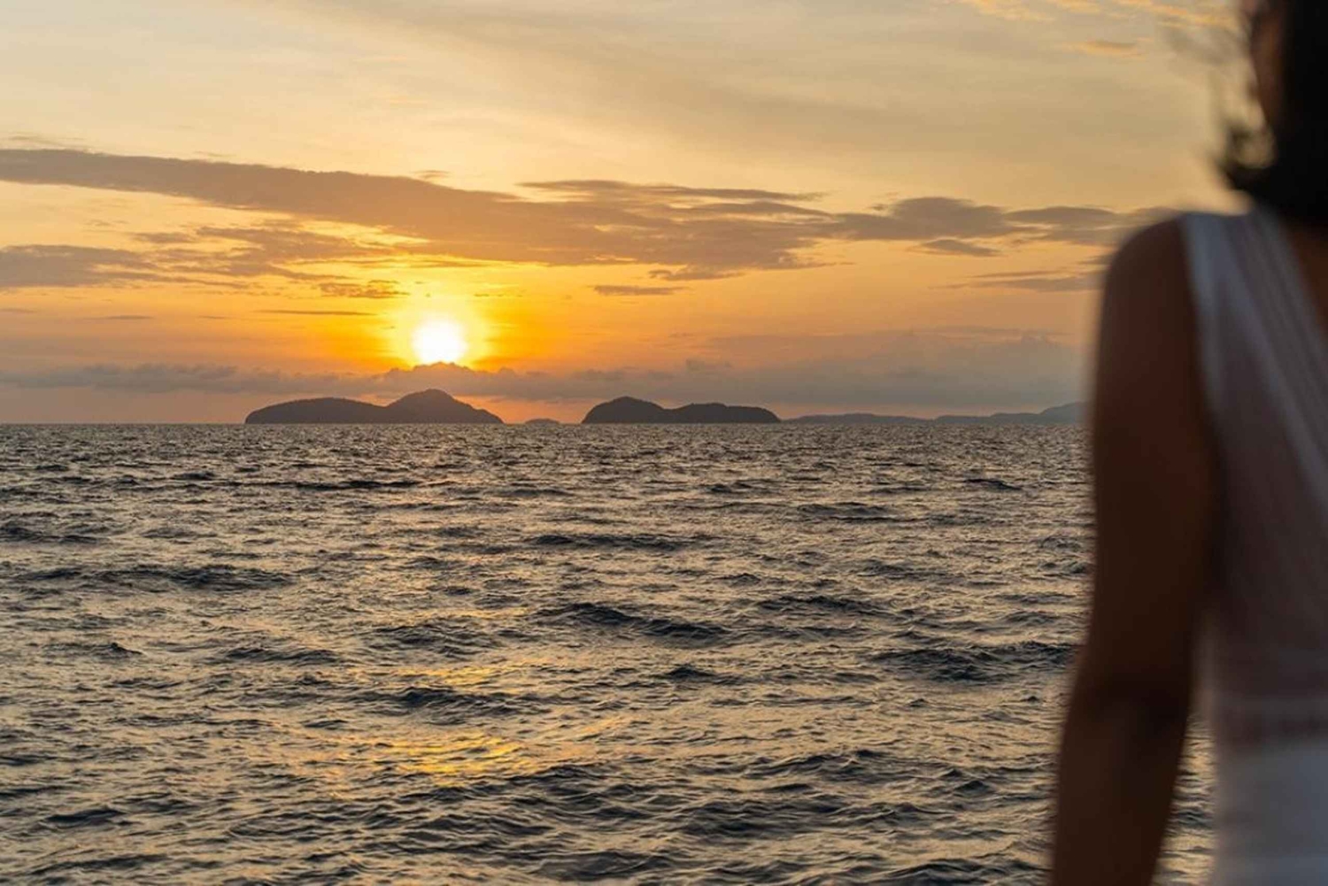 럭셔리 스피드 카타마란 롱테일 보트 스피드 보트 밴으로 호텔 왕복 이동 점심 뷔페 구명조끼 및 스노클링 장비 차, 커피 및 청량음료 선상 제철 과일 숙련된 가이드, 선장 및 승무원 보험 국립공원 입장료 1일차 비치 타워 카약Important Information