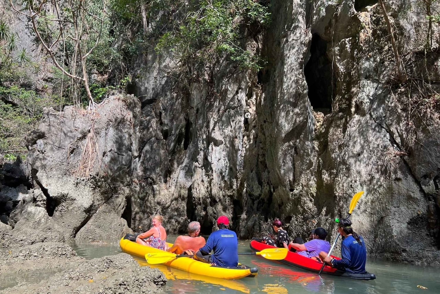 Vervoer van en naar Phuket Rondleiding met kano en kajak door Phang Nga Bay Kano, peddel en zwemvest Lunch en diner Live commentaarImportant Information