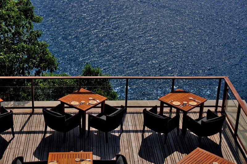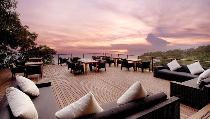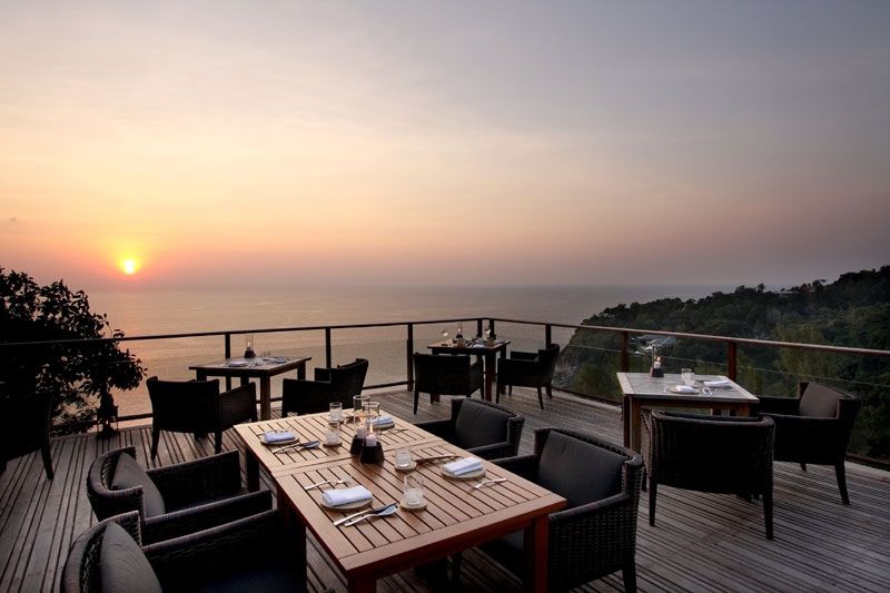 Hoog op de klif top, dit al fresco restaurant is beschaduwd door de bladerdaken van majestueuze Banyan bomen en biedt de perfecte locatie met 270 graden oceaan uitzicht en de meest fantastische zonsondergangen op het eiland.