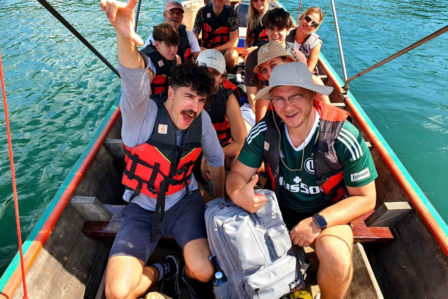 Cheow Lan Lake er et av de vakreste stedene i Sør-Thailand. Vi tilbyr deg mange aktiviteter som gjør turen uforglemmelig. Oppfyllende til innsjøen med vår tur 2 dager 1 natt. Bo på det flytende feriestedet på Phupa-Waree Rafthouse, som er en av de beste luksuriøse rafthouse på innsjøen, omgitt av flott natur. Dag 1: Ta en longtailbåt til vårt flytende feriested. Sjekk inn og nyt våre aktiviteter; kajakkpadling, svømming eller avslapping før lunsj. Lunsjen vår serverer deg med deilig thaimat og sesongens frukt. Etter lunsj er det på tide å utforske innsjøen. Longtailbåt cruise midt i naturen omgitt av kalksteinsfjell. Besøk for å ta et bilde med symbolet på innsjøen ved Khao Sam Glur. Deretter tar du en forfriskende jungeltur gjennom frodig grøntområde, som dekker 1,5 kilometer med variert terreng. Hopp ombord en kort bambusflåte for en nostalgisk reise. Kulminerer i utforskningen av den fascinerende korallhulen. Tilbake til startpunktet for jungelturen og forbered deg på en kveldssafari med båt, som gir deg muligheten til å se ville elefanter, majestetiske bisoner og fargerike hornfugler i deres naturlige habitat. Det er mange typer ville dyr i innsjøen, men det er ikke 100 % garanti for å se dyrelivet. Tilbake til det flytende feriestedet for en herlig middag, fylt med kulinariske herligheter for å tilfredsstille appetitten din og få en god søvn. Dag 2: Legg ut på en tidlig fugletitting-ekspedisjon midt i den frodige regnskogskronen, ta en longtailbåt-cruise midt i naturen omgitt av morgendisen i kalksteinsfjellene, en oppslukende opplevelse. Tilbake til flytende resort for en buffé frokost og en rolig morgen, slik at du kan nyte roen i omgivelsene. 09:00, det er på tide å ta farvel med den flytende resorten mens du forbereder deg på å begi deg ut på neste etappe av reisen din, og ta med deg dyrebare minner om Cheow Lan Lake fortryllende skjønnhet og de uforglemmelige opplevelsene det har gitt deg. Tilbake til Cheow Lan brygge og etter lunsj, ta en minivan transport tilbake i avslapning til hotellet ditt.Includes