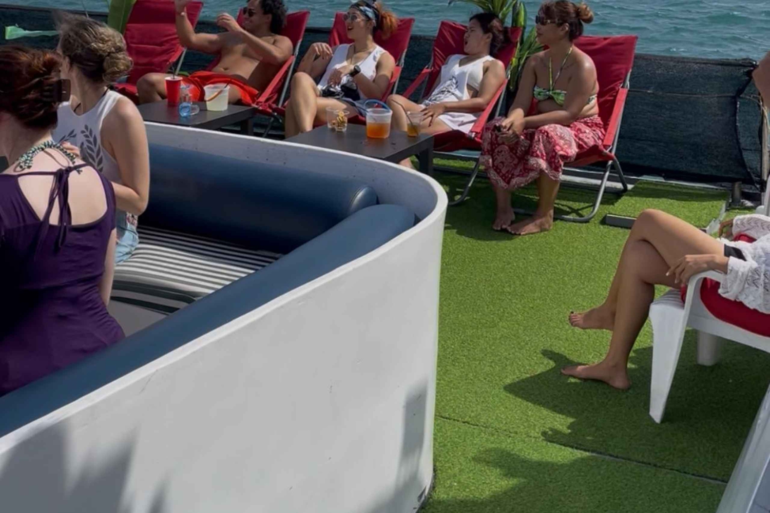 3 AnmeldelserLegg ut på cruise med den største katamaranen i Phuket til Coral- og Racha-øyene. Nyt snorkling/slider/svømmebasseng/paddleboard/dykking/undervannsscooter, og en solnedgangsgrilling med levende musikk om bord.