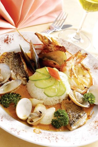Sjømat eller fransk mat forsterkes av effekten av strømmen fra Indiahavet. Maten er under oppsyn av den kjente Savoey-matretten, med tillegg av hvit sand og uendelig blått fra havet - dette er den perfekte romantiske feiringen av en ferie. Spisende kan nyte opplevelsen inne eller ute.