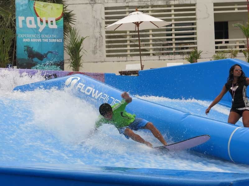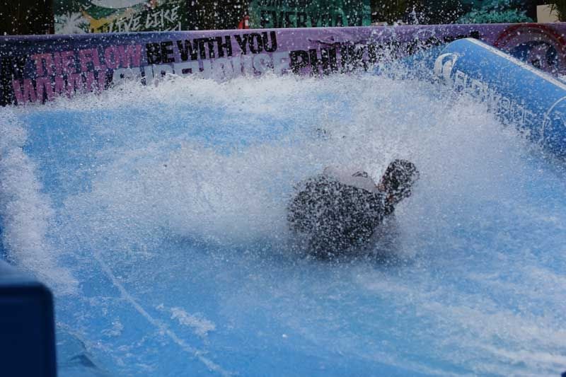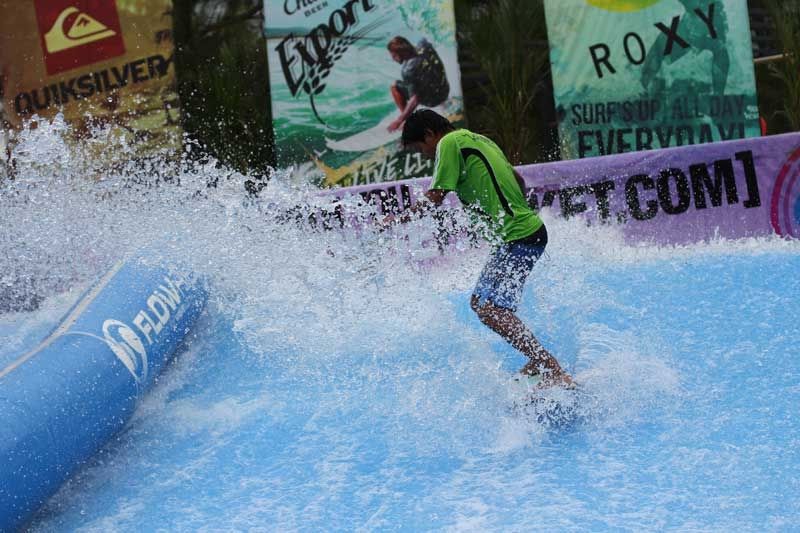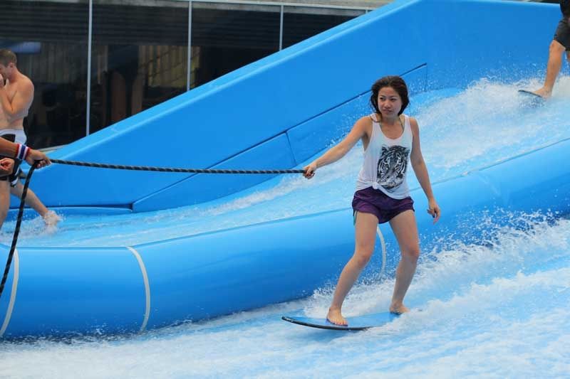 Surf på en perfekt konstant bølge! Dobbelt FlowRider gir et kontinuerlig vannfall på en trampoline-lignende overflate, en bølge brukt i andre brettsporter som bodyboarding, skateboarding, wakeboarding og snøbrettkjøring.