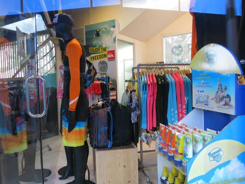 Flowboards, bodyboards, surfingklær og tilbehør pluss suvenirer er tilgjengelige i gavebutikken.