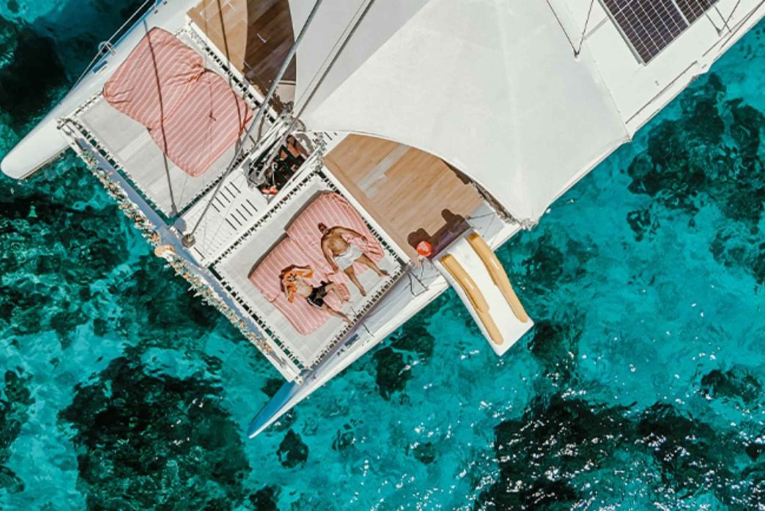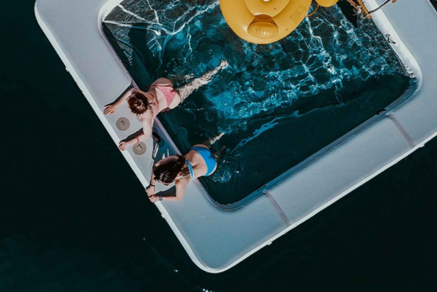- Przestronny, luksusowy katamaran z siatkowym salonem i pływającym basenem morskim