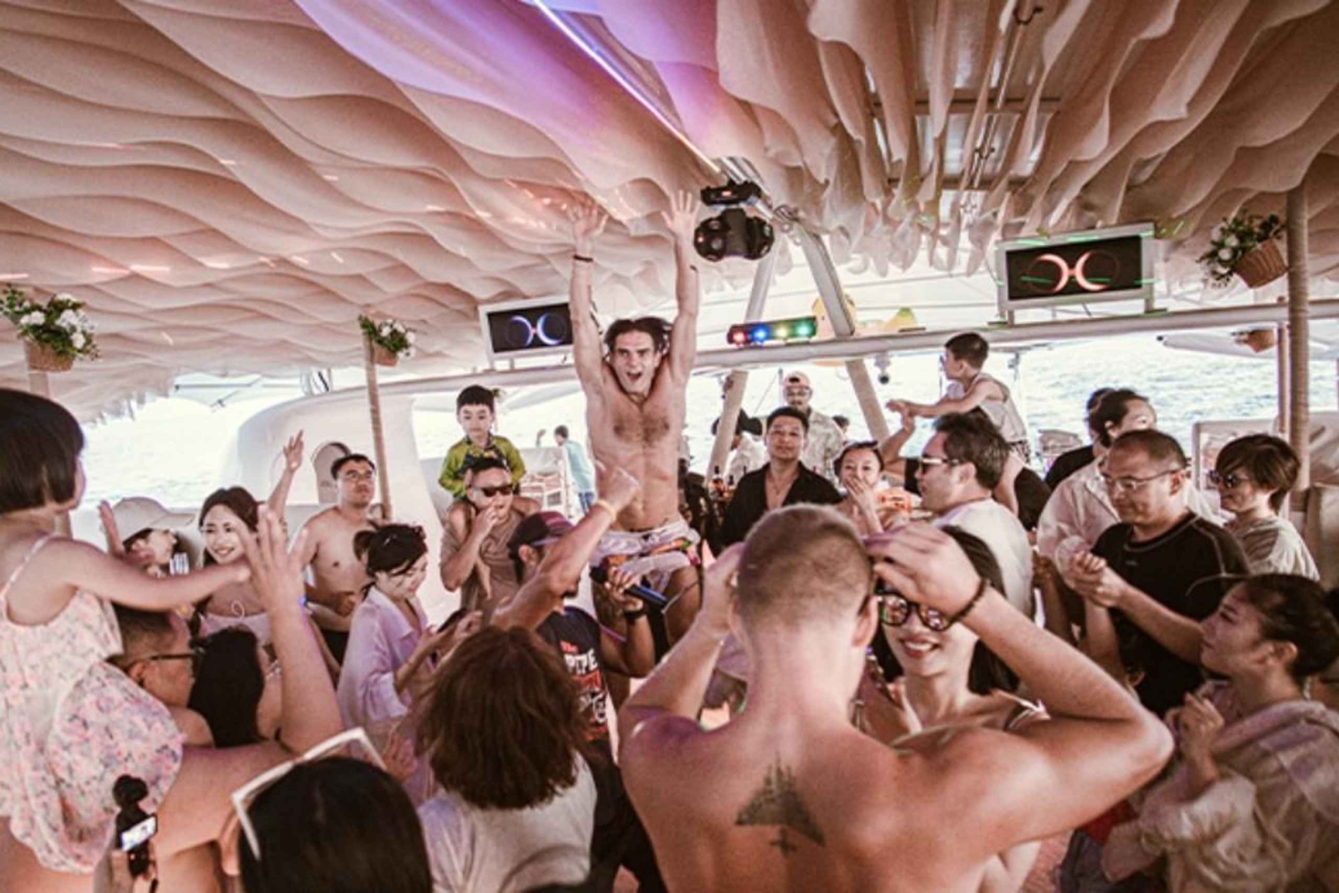 Dlaczego warto wybrać Rhapsody Boat Club na wycieczkę 1-dniową po Phuket Twoja pływająca scena na morzu Wskakuj na pokład Rhapsody, gdzie muzyka, ruch i magia Andamanów spotykają się w jednym miejscu. To coś więcej niż rejs katamaranem – to najbardziej tętniąca życiem impreza na Phuket, stworzona dla podróżników, którzy pragną rytmu, stylu i niezapomnianej energii. Impreza z DJ-em o zachodzie słońca – tylko na Rhapsody Zamień tropikalne popołudnie w parkiet taneczny. Tańcz do rytmu muzyki na żywo od naszego DJ-a, gdy łódź płynie po turkusowych morzach Dołącz do naszej kultowej piankowej imprezy, gdzie bąbelki spotykają się z rytmem Wznieś kieliszek, gdy słońce znika za przylądkiem Promthep, najbardziej filmowym punktem widokowym Phuket Ty wnosisz energię, my uchwytujemy chwilę Zapomnij o selfie – nasz profesjonalny fotograf uchwyci Twoje najlepsze ujęcia i szczere uśmiechy. Niezależnie od tego, czy pławisz się w basenie, czy tańczysz o zachodzie słońca, Twoja radość staje się sztuką. All-inclusive i drinki bez limitu Ciesz się nieograniczoną ilością napojów bezalkoholowych, soków i wody mineralnej przez cały dzień. Na pokładzie możesz też kupić koktajle i napoje premium. Oceaniczne przygody z odrobiną zabawy Kiedy rytm zwolni, zanurz się w przygodzie: Nurkuj w krystalicznie czystych wodach Śmigaj skuterem morskim Wiosłuj na desce lub kajaku wokół zatoki Wskocz do oceanu lub zrelaksuj się w naszym pływającym basenie Pyszne jedzenie na morzu Bufet obiadowy: bagietki z pomidorami, krakersy z łososiem, sałatka z krabów, grillowane kiełbaski, stek z kurczaka, pierogi, smażony ryż z jajkiem i makaron Podwieczorek: kanapki, słone ciasteczka jajeczne, budyń, owoce sezonowe i napoje bezalkoholowe Plan podróży – idealny dzień w raju 10:45 – Zgłoś się na molo Chalong 11:50 – Lunch w formie bufetu dla smakoszy na pokładzie 12:40 – Zrelaksuj się lub popływaj na plaży Banana na wyspie Coral Island 14:00 – Rejs na wyspę Racha (Raya) i zabawa w wodzie 15:00 – Nurkuj, wiosłuj lub zjedź do morza 16:40 – Rozpoczyna się impreza z DJ-em o zachodzie słońca: pianka, rytmy i wibracje 18:30 – Wracamy do molo z niesamowitymi wspomnieniami Uwaga: harmonogram może się różnić w zależności od warunków na morzu. Rhapsody 2025 – Sylwester Zakończ rok w wielkim stylu podczas sylwestrowego rejsu na pokładzie Rhapsody – olśniewającej nocy pełnej muzyki, świateł i morskiej magii. Tańcz pod gwiazdami, wznieś toast o północy i oglądaj fajerwerki rozświetlające niebo nad Andamanem. Główne atrakcje: Luksusowa impreza na katamaranie z panoramicznymi widokami DJ na żywo, męskie modele i świąteczny program rozrywkowy Odliczanie do północy i fajerwerki Przewodnicy mówiący po chińsku i angielsku Prywatne stoliki dostępne z voucherami na pokładzie Harmonogram imprezy: 19:30 – Zgłoś się w Seven Plus Travel przy molo Chalong 20:00 – Wejście na pokład i drinki na powitanie 20:40 – Rejs z DJ-em wzdłuż wybrzeża Patong 24:00 – Odliczanie i fajerwerki nad morzem 00:30 – Tańcz na pokładzie 02:00 – Wracamy do molo w Chalong Dostępne tylko 31 grudnia. Miejsca są ograniczone – wymagana jest wcześniejsza rezerwacja. To nie jest zwykła wycieczka łodzią po Phuket Zapomnij o zatłoczonych motorówkach i plastikowych kubkach. Rhapsody zapewnia: Prawdziwą muzykę – DJ na żywo puszcza Twoją ścieżkę dźwiękową z wyspy Prawdziwe wspomnienia – profesjonalnie uchwycone chwile Prawdziwy komfort – przestronne pokłady i wykwintna kuchnia Prawdziwy klimat – nie chaos, tylko więź i radośćIncludes